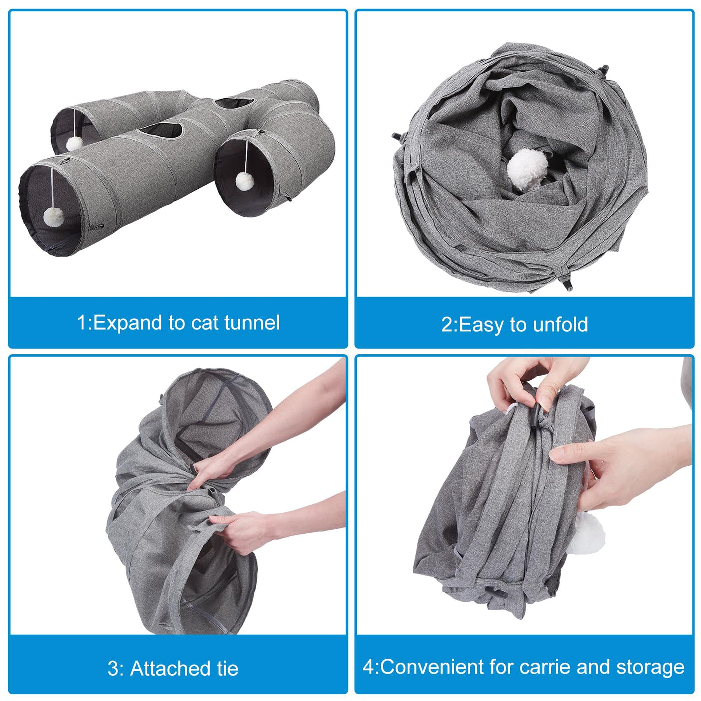 Durable Oxford Fabric: Compared to the paper materials used in the market our cat tunnel is made of Oxford fabric which is sturdy and durable and is not easy to tear or scratch. There will be no annoying noise when using.