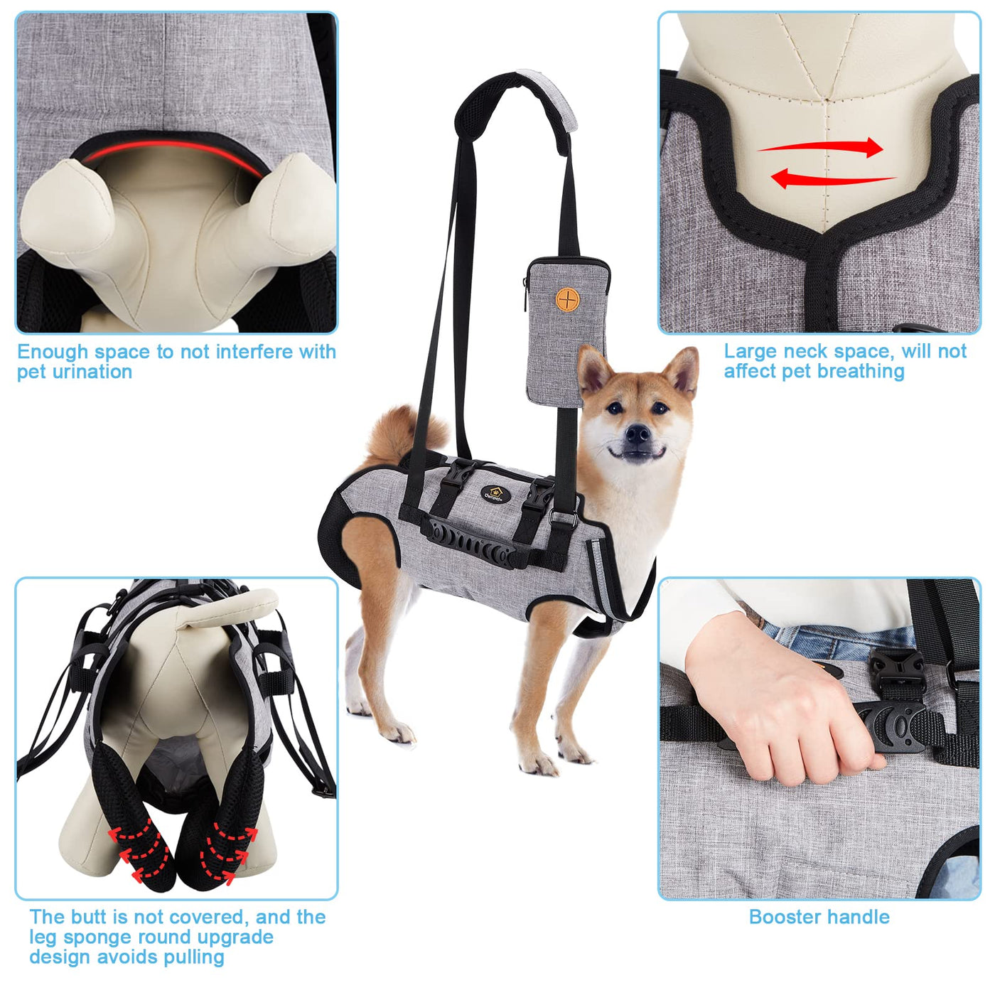 Q: Is the Ownpets Dog Sling Harness suitable for large dogs?A: Yes, the Ownpets Dog Sling Harness is suitable for large dogs. It comes with additional assistance handles on sizes M to XXL, providing extra support when lifting or carrying larger breeds. Ensure you select the appropriate size for your dog's weight and measurements.