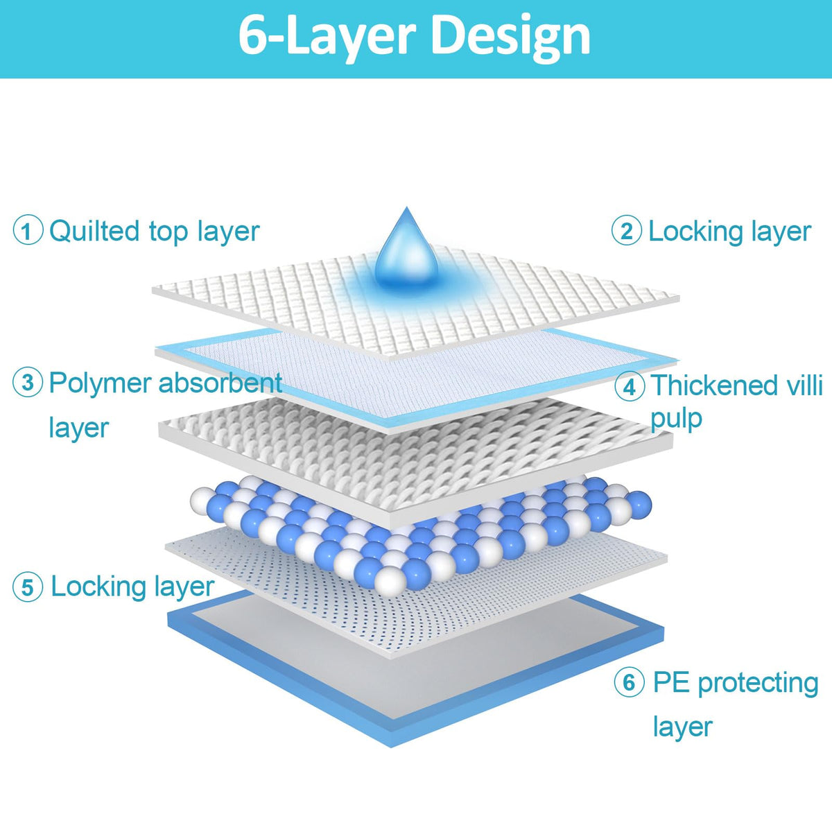 Super absorbent & quick dry 6 layers of premium material to absorb water and prevent overflow Leak-proof protection to keep your home clean 2 size optional: L & XL Suitable for many occasion: on paper boxes, pet mats, kennels, carriers & more Great for puppies, adult dogs, aging & sick dogs