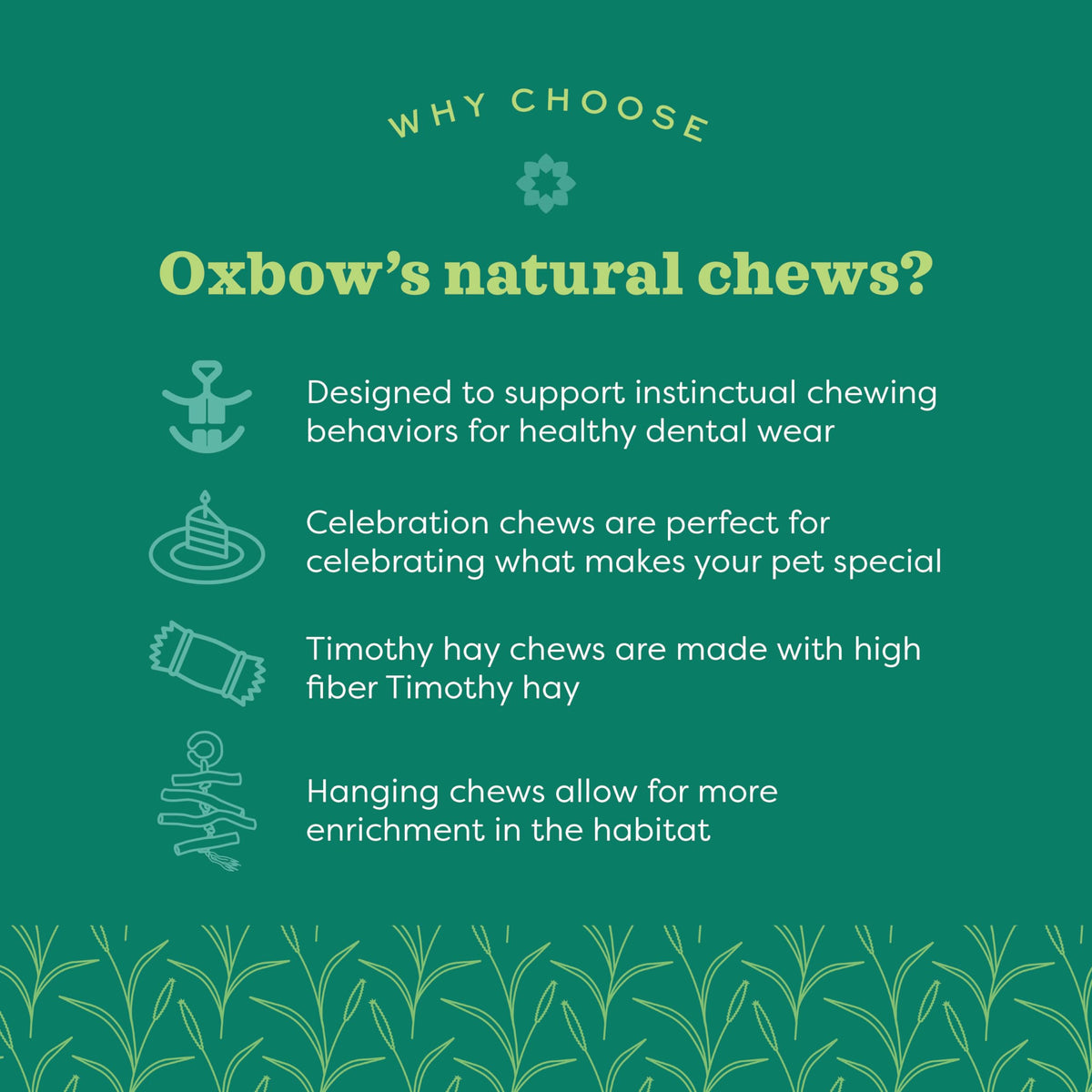 Enriching your pet's daily life starts with supporting natural behaviors such as exploring, playing, hiding, and chewing. Oxbow Enriched Life is designed with these natural behaviors in mind and is constructed from 100% pet-safe materials, allowing you to nurture your pet's mind and body in safe and fun ways every day.
