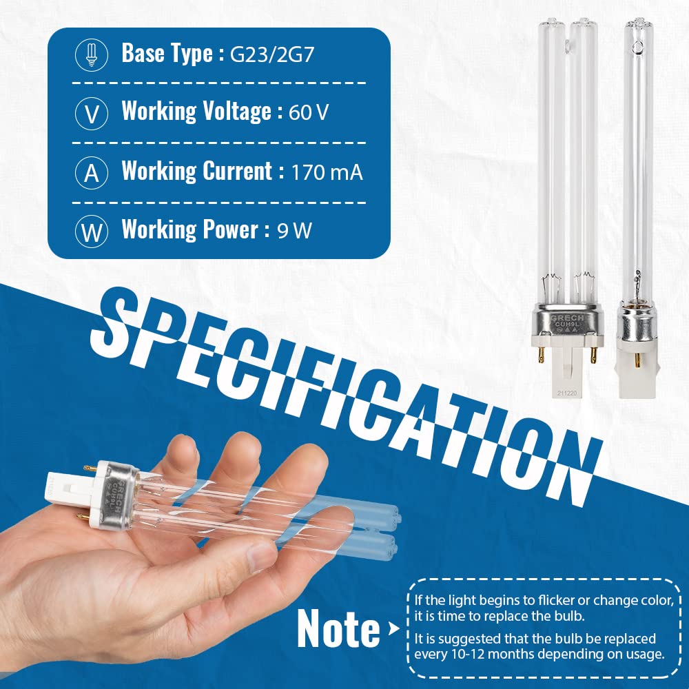 Oxyful 9W UV Ultraviolet G23-2 pin Base Replacement Light Clarifier Lamp Filter for Aquarium Koi Pond Fish Tank Compatible to CU