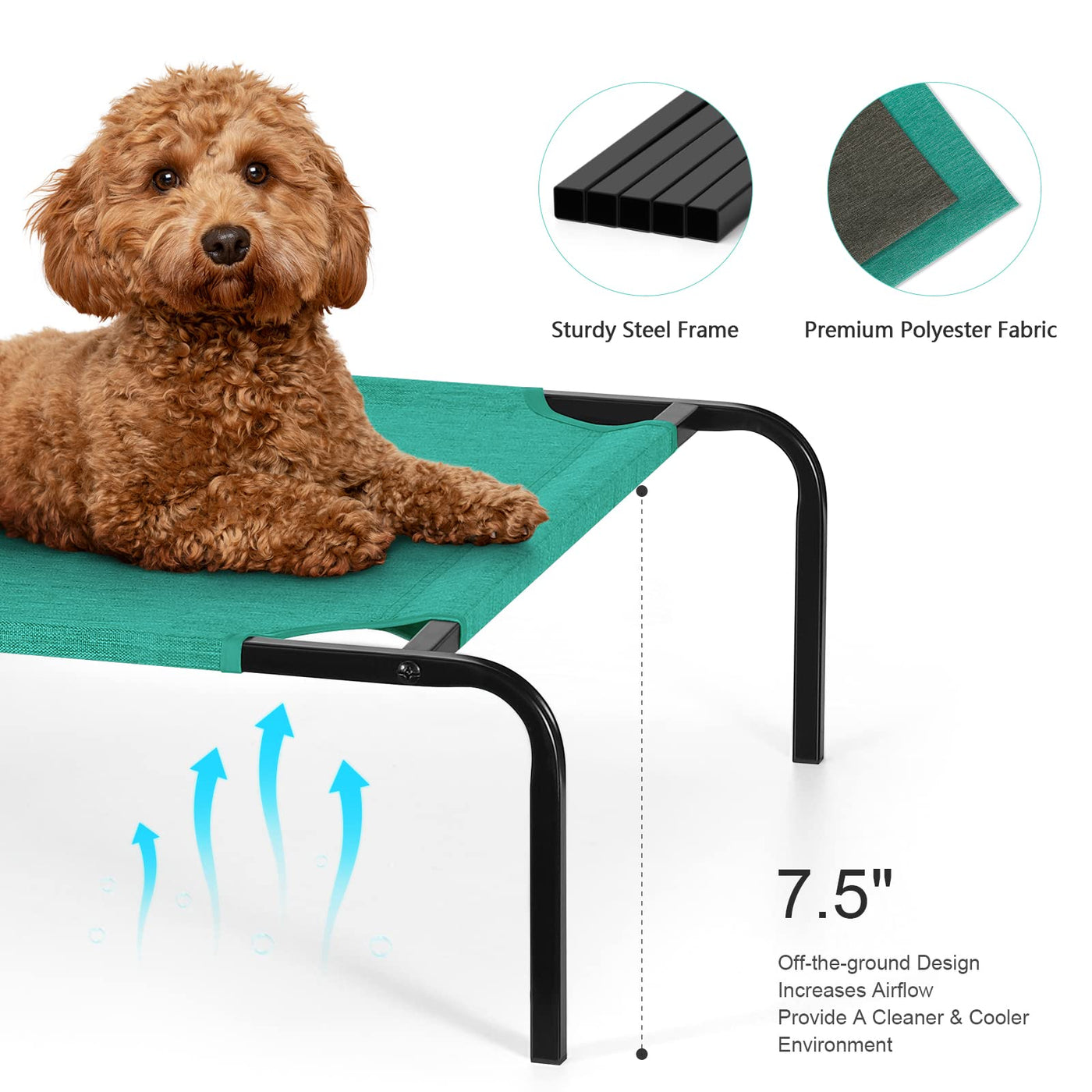 ?Elevated Dog Cat Bed?:Our portable small dog bed is specially designed with 7.5'' elevated from the ground Which would highly increase airflow around the dog cot and provides a cleaner dryer cooler and more comfortable environment for your pets especially in the hot summer.