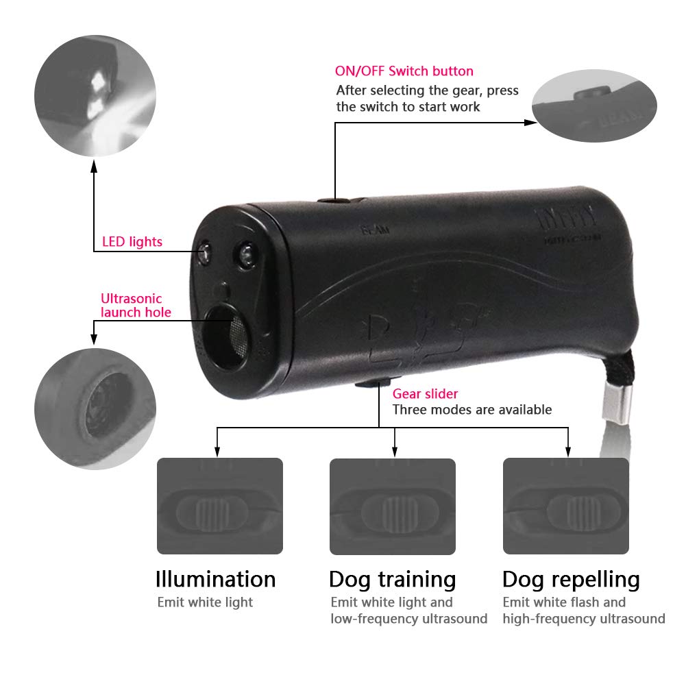 Oyefly Handheld Dog Trainer, 3 In 1 With Led Flashlight,Bark Stopper Dog Trainer Devices Training Tool/Stop Barking(Black)