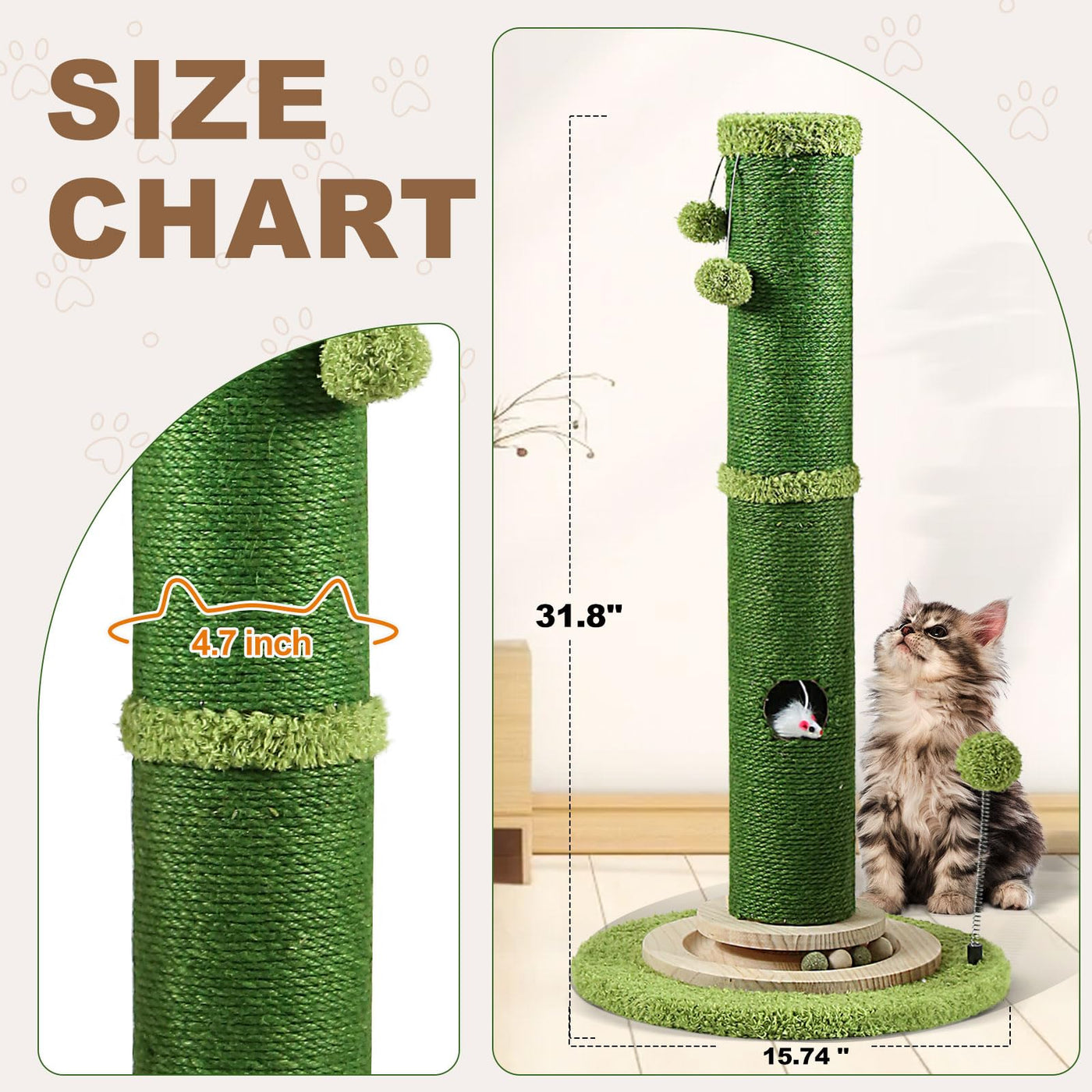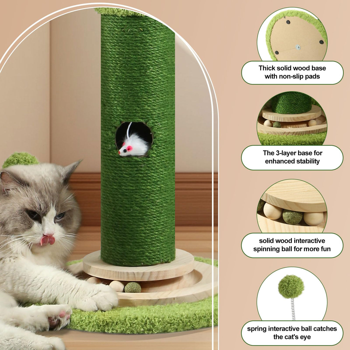 Oyx Scratching Posts For Indoor Cats Adults, 31.8 Tall Cat Scratching Post, Bottom Mouse Hole And Interactive Ball Track, Top