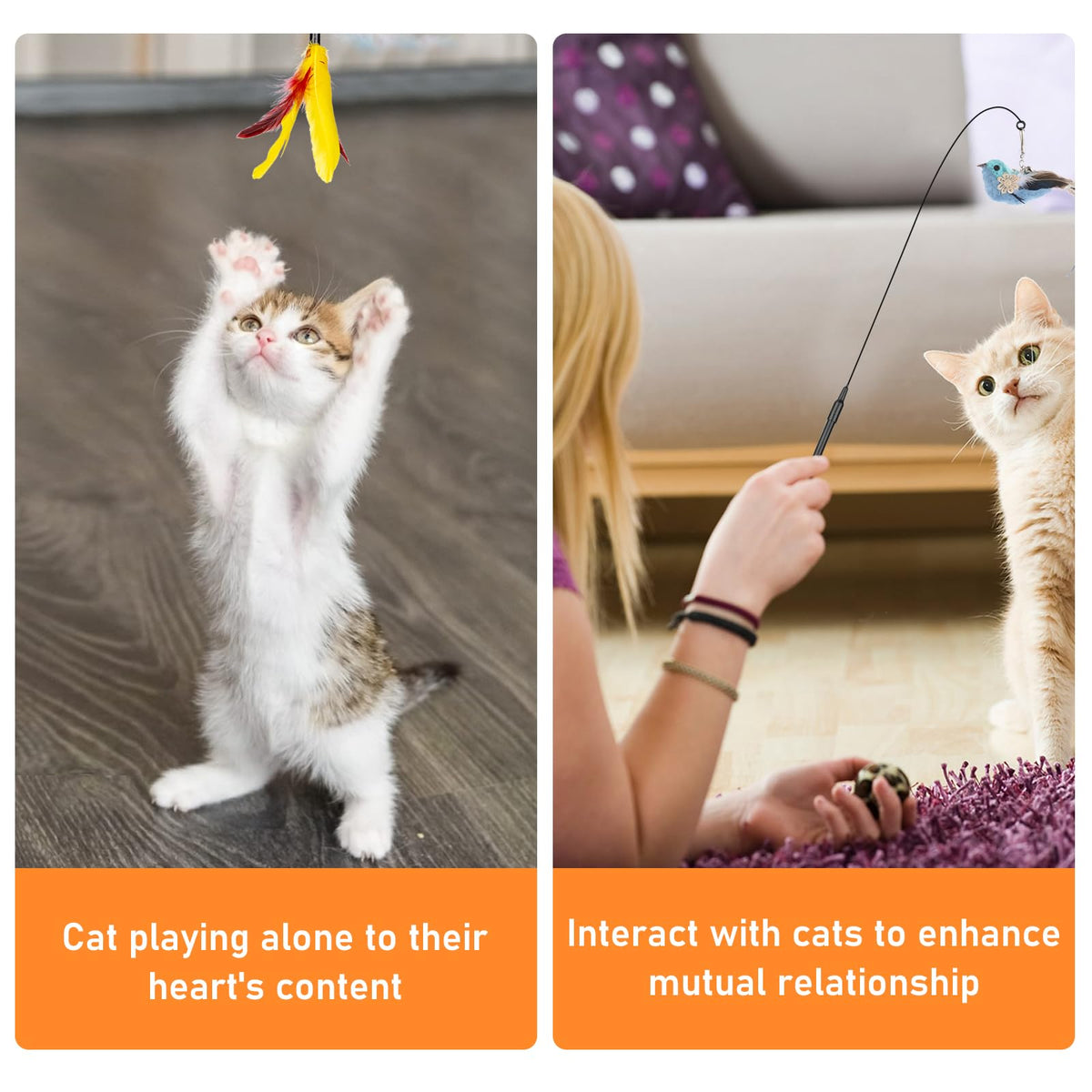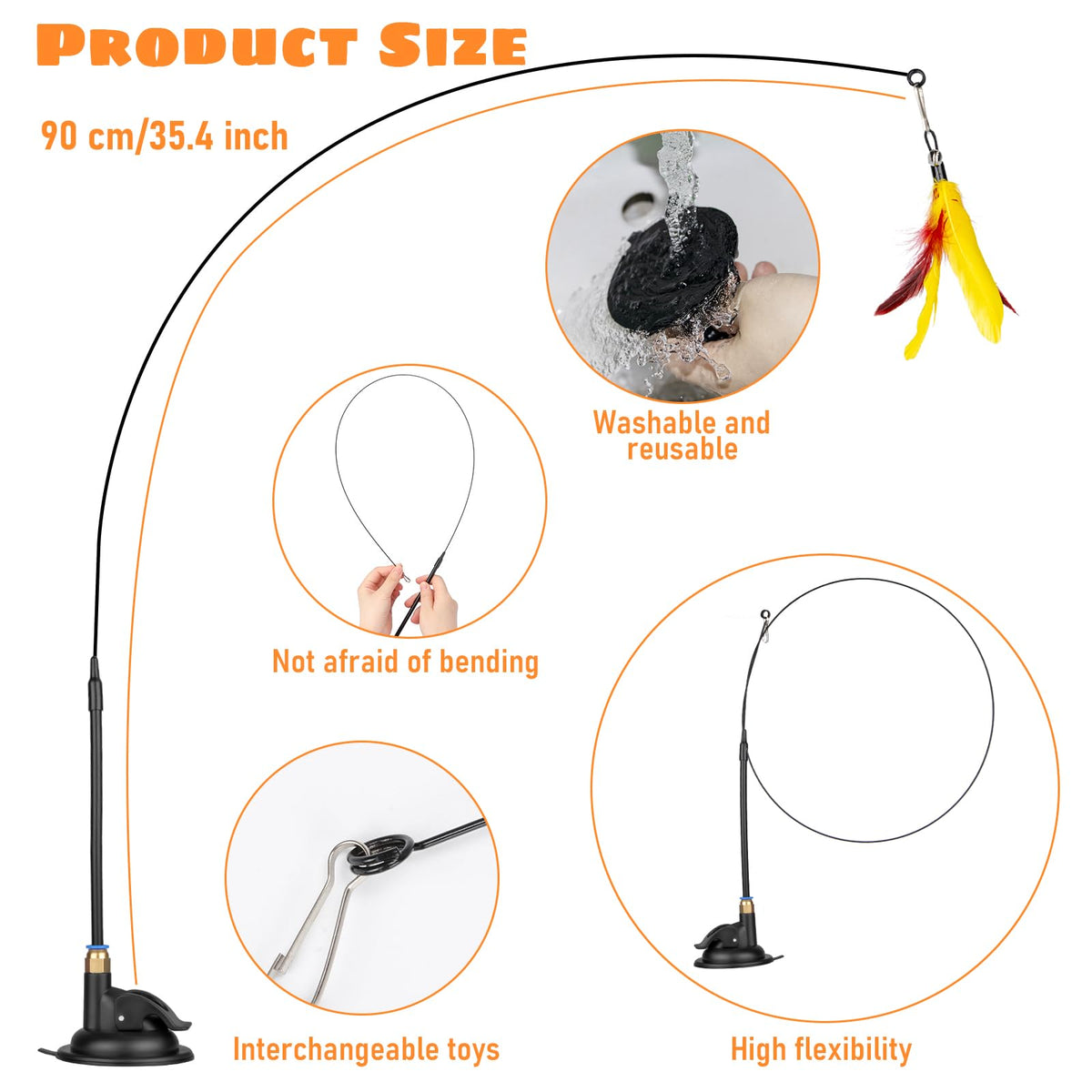 Oziral Cat Feather Toys, 10Pcs Toys With Super Suction Cup, 2Pcs Detachable Wand & 6Pcs Replacement Teaser Refills, Interactive