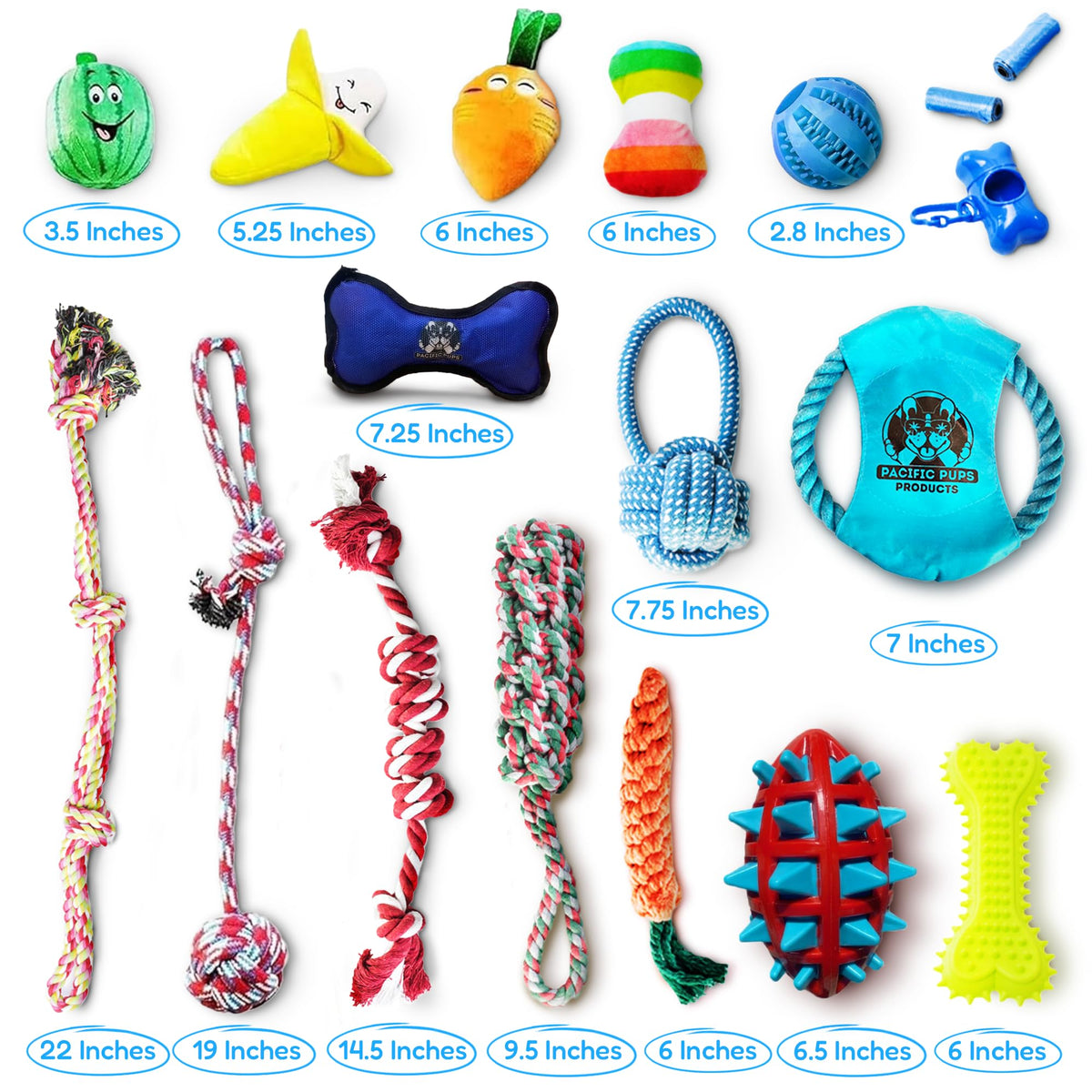 Pacific Pups Products 18 Piece Dog Toy Pack - Dog Chew Toys, Puppy Toys & Outdoor Dog Toys - Dog Toys To Keep Them Busy - Supports Non-Profit Dog Rescue - 18 Toys For Dogs