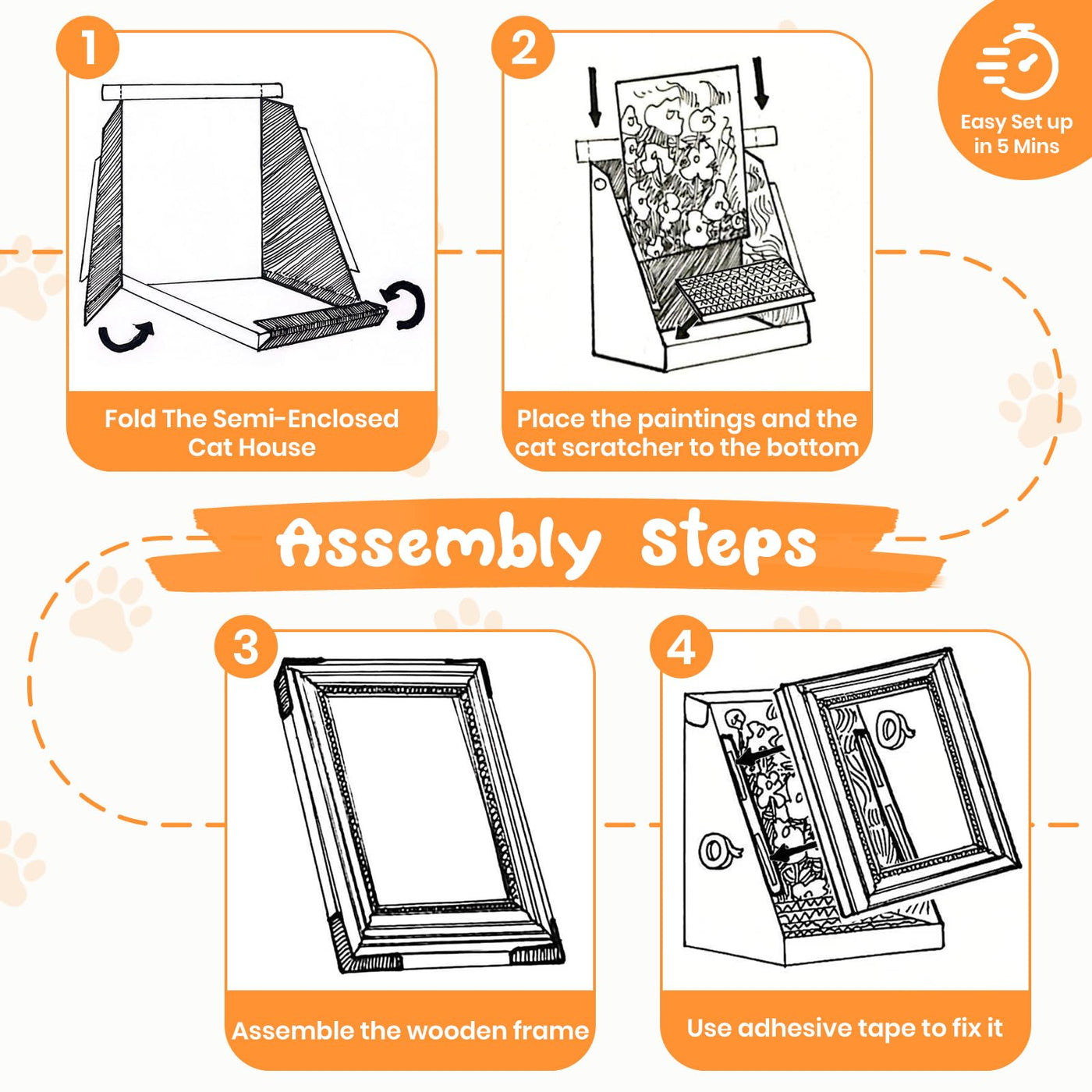 Painting Cat Scratcher For Indoor Cat Scratching Board Pad, W/Horizontal Cartboard Cat Scratcher Bed House Half-Surround Design