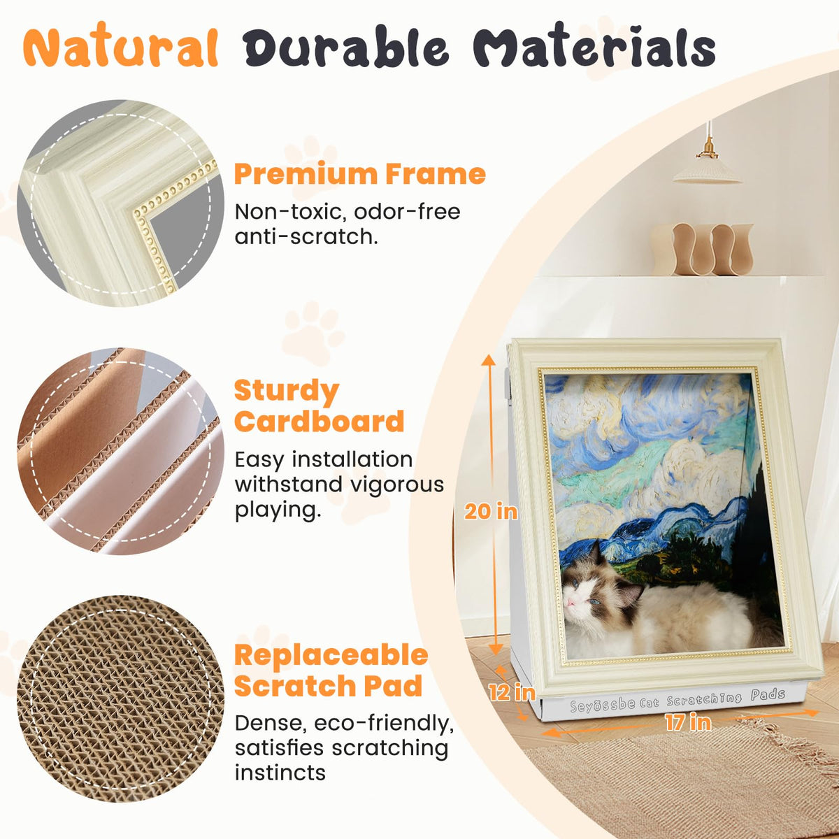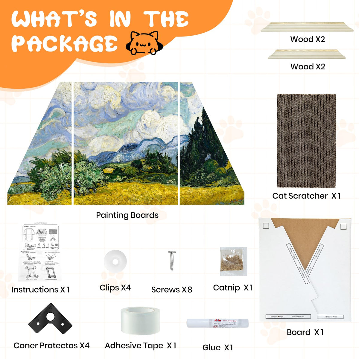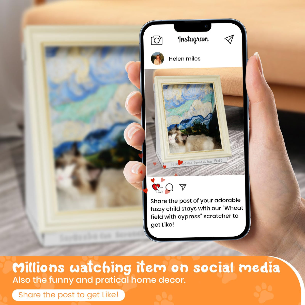 Painting Cat Scratcher For Indoor Cat Scratching Board Scratch Pad Cartboard Cat Scratcher Bed House Half-Surround Design W/ Horizontal Cat Scratcher W/ Catnip (Field With Cypresses, Medium - Large)