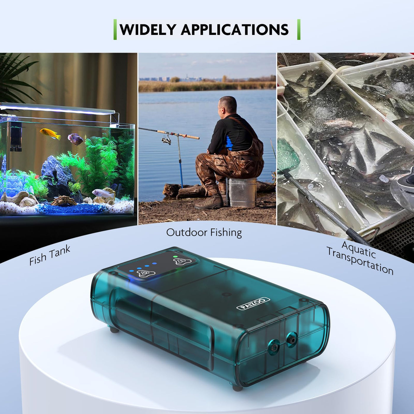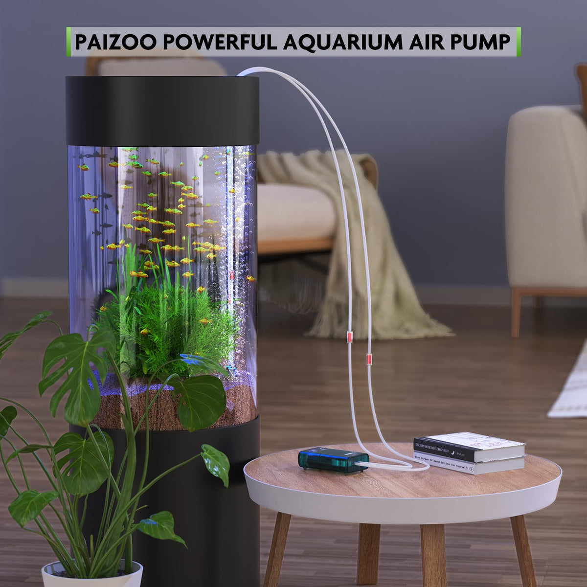 PAIZOO Aquarium Air Pump, Fish Tank Aerator Dual Outlets Battery Powered, Quiet Rechargeable Oxygen Pump with Accessories for 5-
