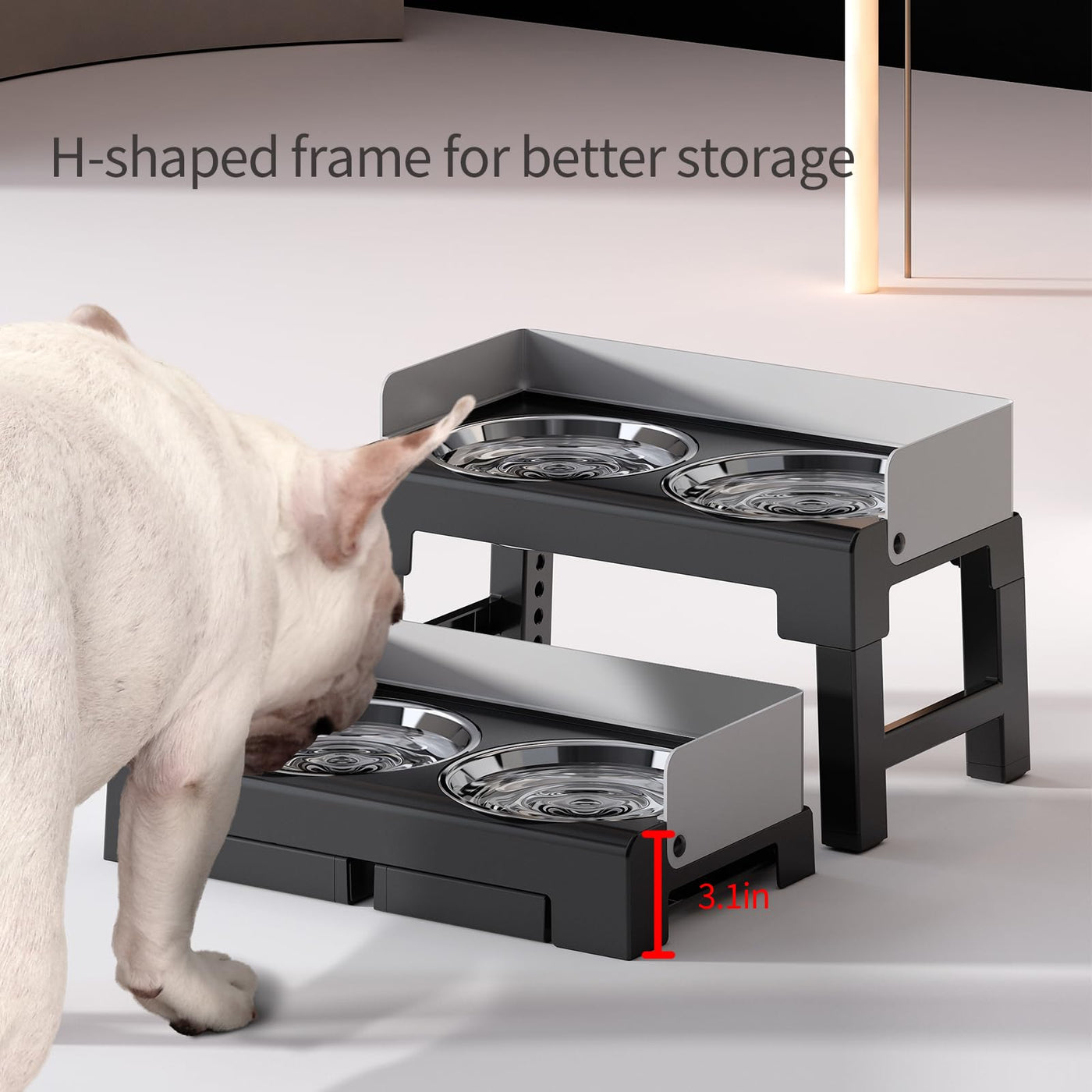 Pakeway Elevated Dog Bowls, Spill Proof, Tiltable Dog Feeder With 2 Stainless Steel Bowls, 6 Height Adjustable Raised Bowl