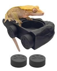 Experience a silicone gecko food ledge from Pangea! Our silicone magnetic crested gecko feeding ledge comes fully enclosed in silicone that makes it a handy kind of crested gecko food dish that is easy to clean. Designed to hold .5 in gecko food cups, the eco ledge comes with two magnets that allow this magnetic reptile ledge to hold up to 50 grams without issue. The silicone contained in this reptile food dish will not break down and leach into your gecko food, making this an excellent choice for a reptile feeding dish. Fits most common plastic, paper, and silicone gecko feeding cups which makes it a breeze to fit this reptile feeder into your crested gecko terrarium. The silicone coating means that the ledge will work as a gecko water bowl or gecko food bowl without needing to insert separate crested gecko feeding cups. Simply remove from your terrarium and rinse it in the sink or dishwasher to clean it off! The silicone can take the heat and will stand up to a long period of rough handling, feeding, and cleaning. This ledge also works as a lizard water dish for day geckos and tree frogs, and even makes a good chameleon feeding bowl. Useful as a way to incorporate a reptile food and water dish into any reptile tank, since the height is fully adjustable. This magnetic ledge for reptiles is much more convenient than a reptile suction cup bowl, since the magnets are located on the other side of the glass and cant be knocked down by your little lizard as it goes into a feeding frenzy! Ledge Dimensions: L: 4.125 x W: 2.625 x H: 1.188 Cup Holder Dimensions: Diameter: 1.625 x Depth: 0.625