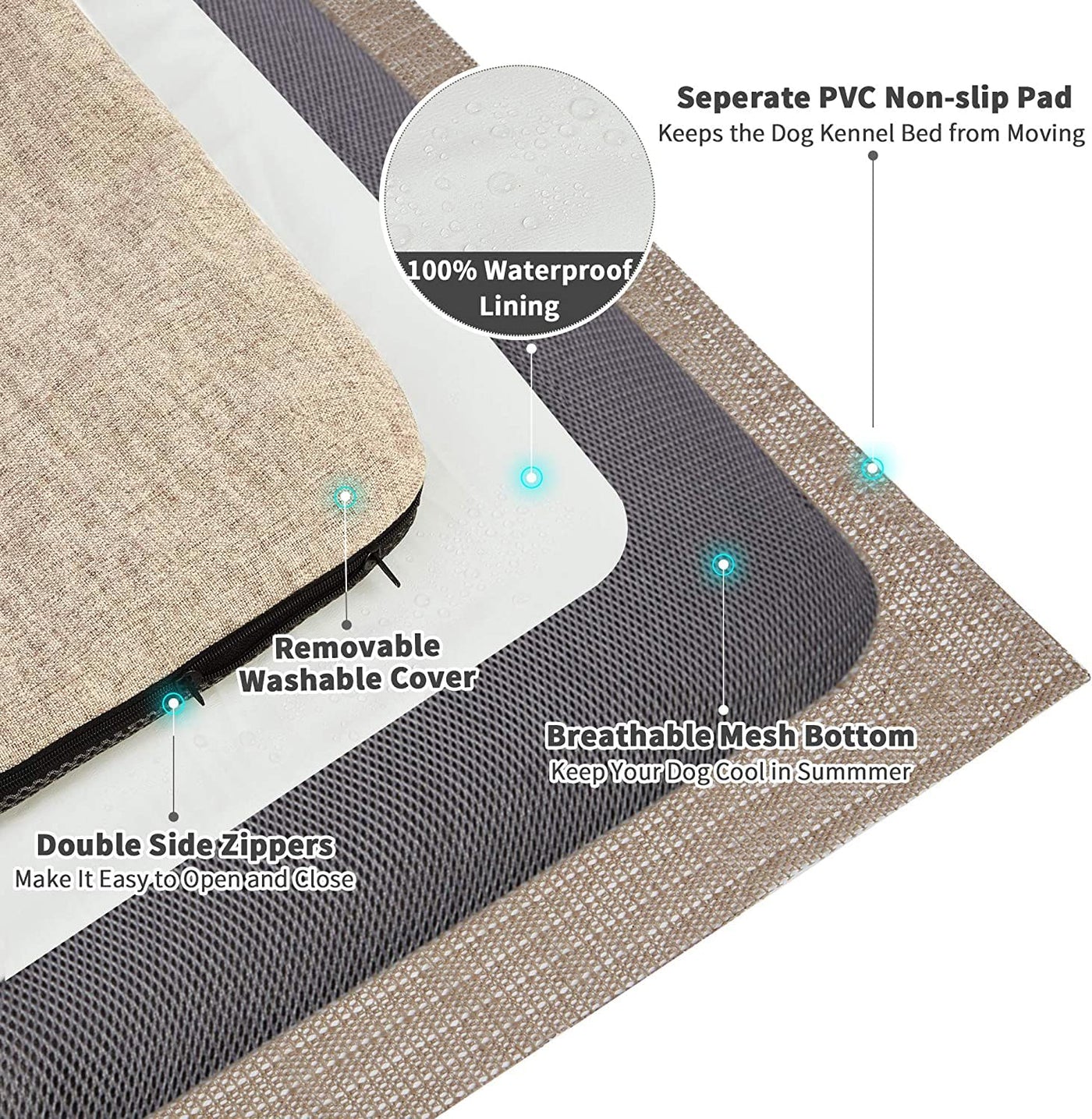 Panku Orthopedic Dog Beds For Extra Large Dogs, Dog Pad For Crate With Durable Washable Waterproof Linen Removable Cover, Cream