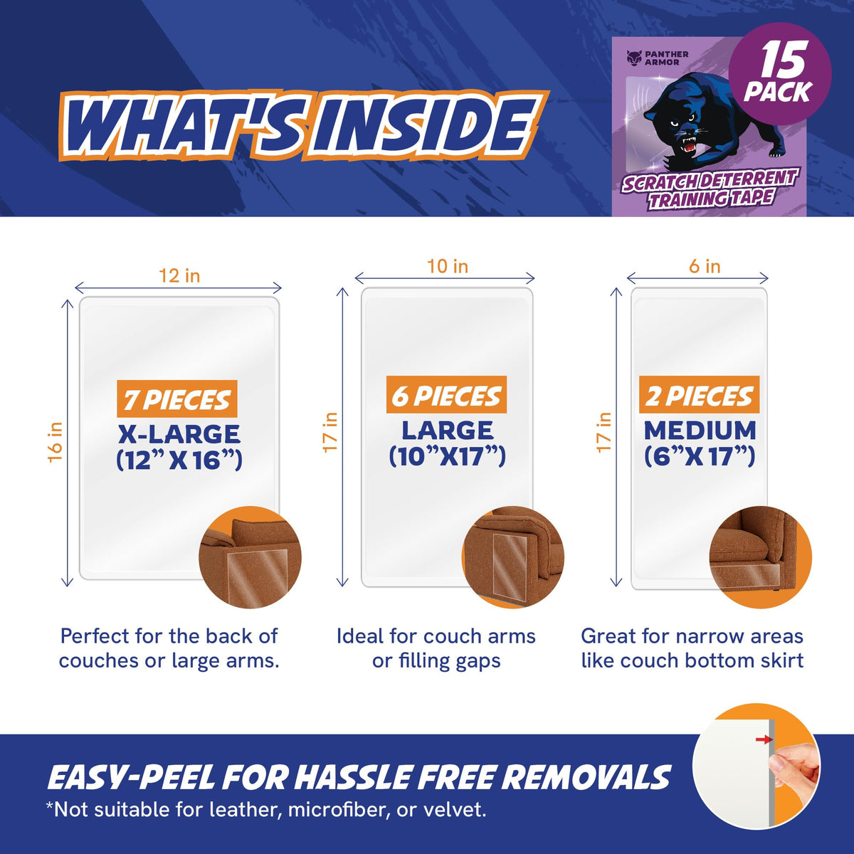 Panther Armor 15-Pack Anti-Cat Scratch Deterrent, Couch Protector From Claws, Training Tapes, Furniture Protector, No Pins For S