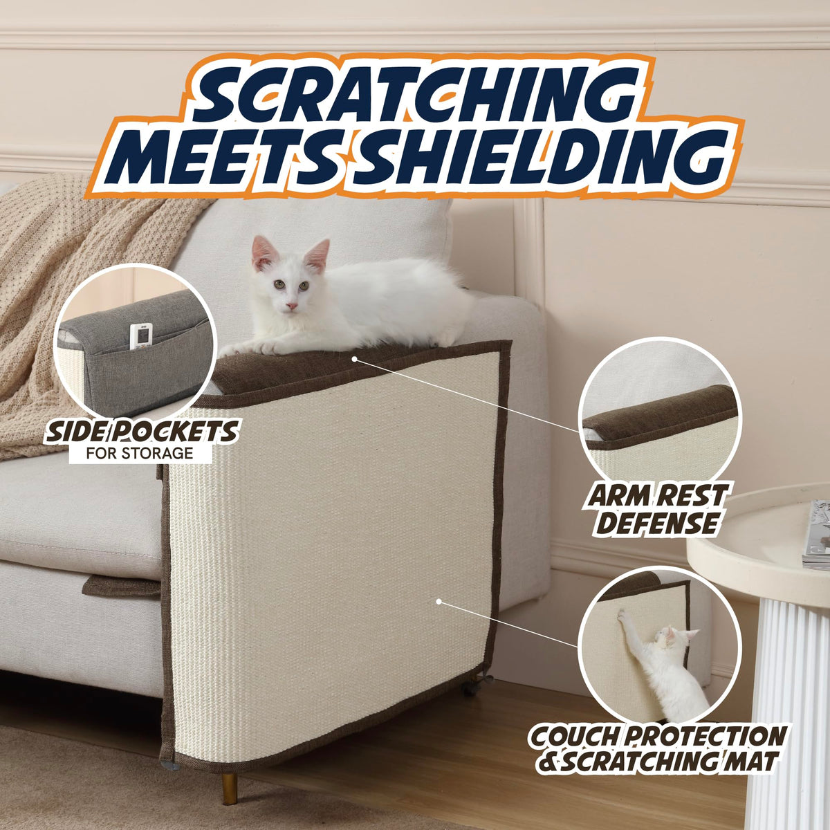 Panther Armor Sisal Scratching Mats For Cats [2Pcs Of Left & Right Arm In Brown] Furniture Protector From Cat Scratch - Scratch Pads - Couch Covers