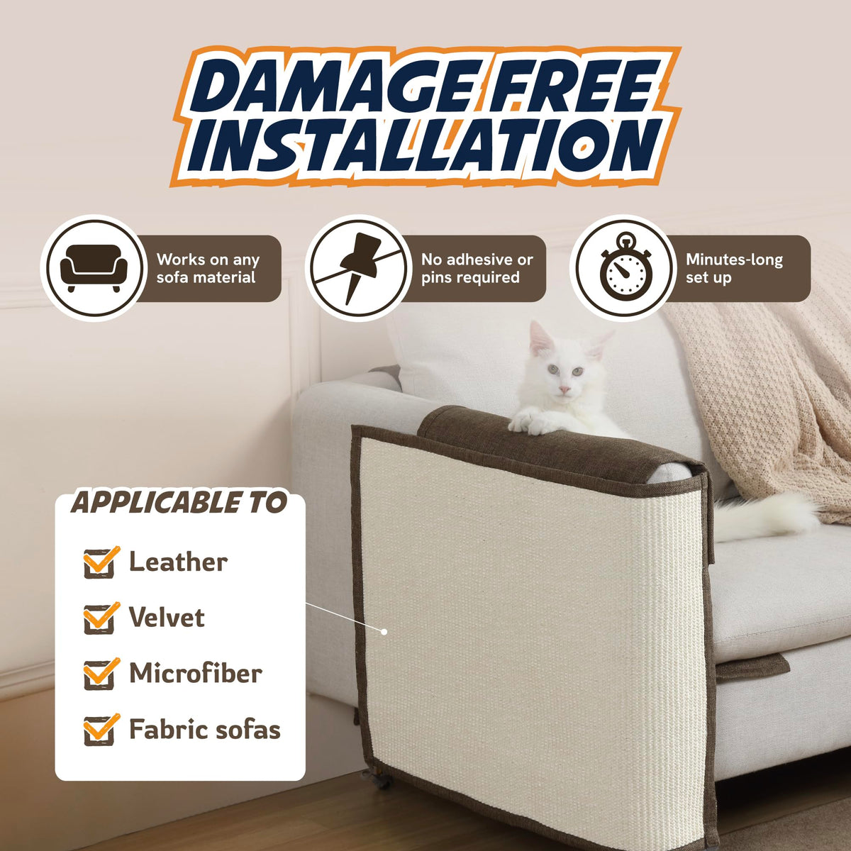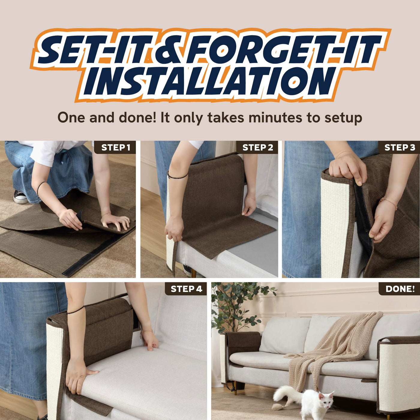Q: How do I install the Panther Armor Sisal Scratching Mats?A: Installing the scratching mats is easy. Simply position the protector on your sofa and secure it using the included velcro straps. This user-friendly design allows for hassle-free setup, providing immediate protection for your furniture.