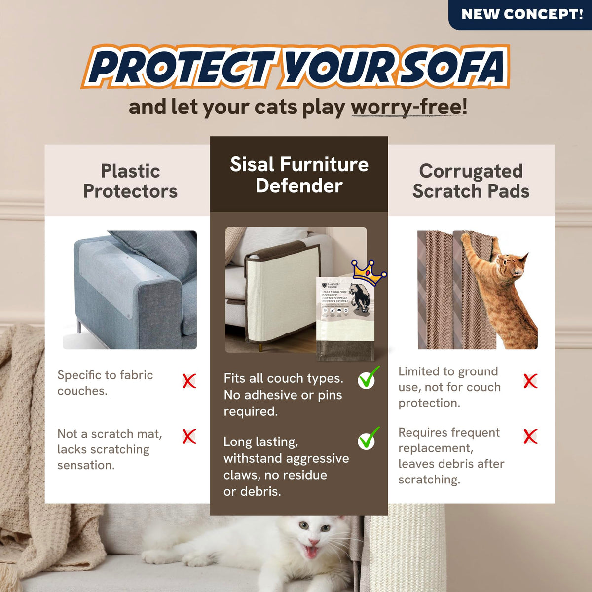 Introducing Sisal Furniture Defender by Panther Armor - The Ultimate Solution to Protect Your Sofa from Cat Scratches! As devoted cat lovers ourselves, we understand the struggle of preserving the beauty of your cherished furniture. That's why we designed the Sisal Furniture Defender, the perfect blend of functionality and style. Our innovative furniture protectors, crafted from durable sisal material, provide unbeatable defense against cat scratches while seamlessly fitting most standard American sofas. Say goodbye to furniture damage and hello to a harmonious home with Sisal Furniture Defender. Trust the unbeatable strength of sisal and the perfect fit for your sofa. Protect your furniture with confidence, knowing that you've chosen the ultimate defense against cat scratches.