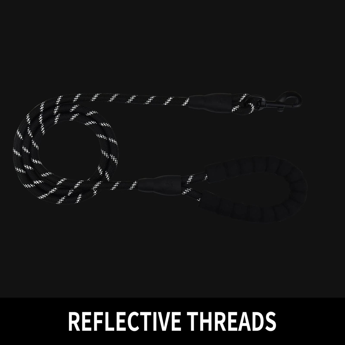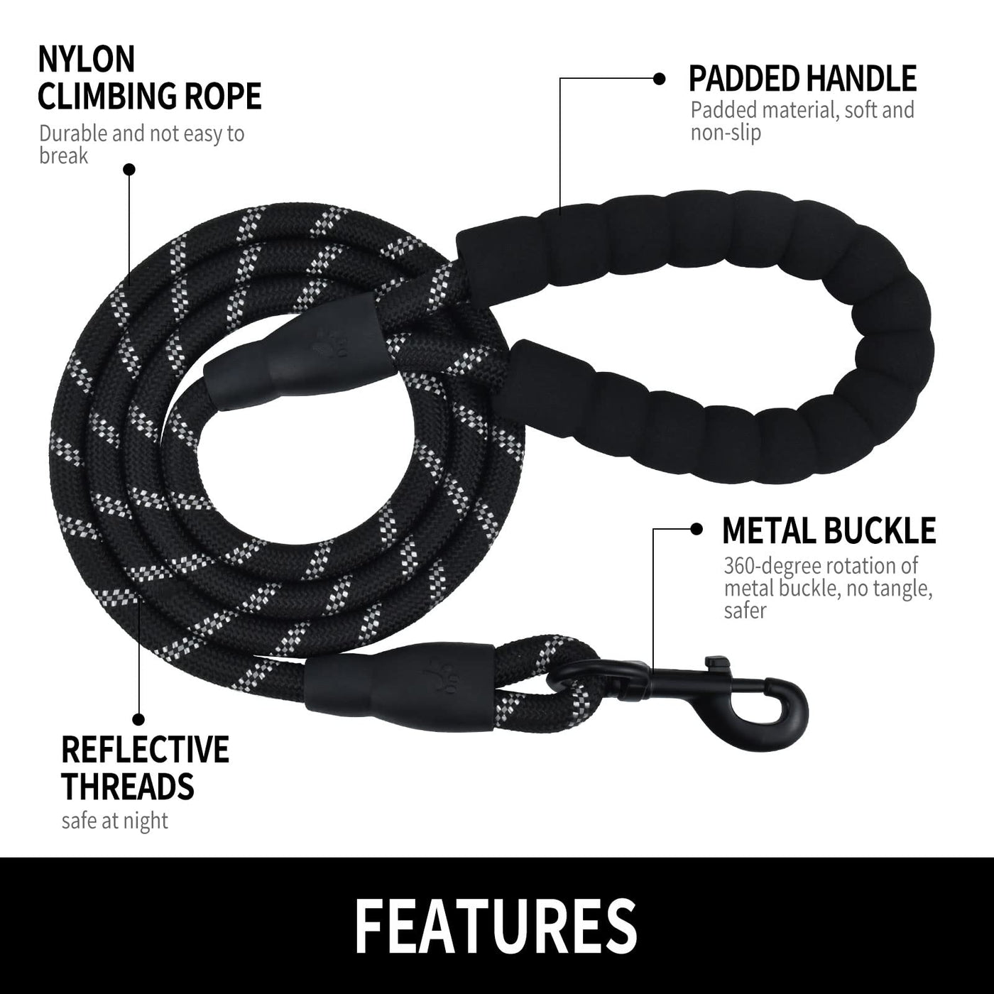 Panykoo 456 FT Strong Pet Dog Leash with Soft Padded Handle Highly Reflective Rope for Night Walking 360-Degree Rotating Metal Buckle without Tangles Suitable for Small Medium and Large Dogs(6ft Black)