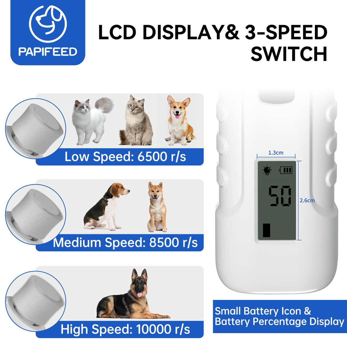 Papifeed Dog Nail Grinder Professional Pets, 3-Speed Electric Quiet Dog Nail Grinder, Rechargeable Dog Nail Trimmers - With 2 Le