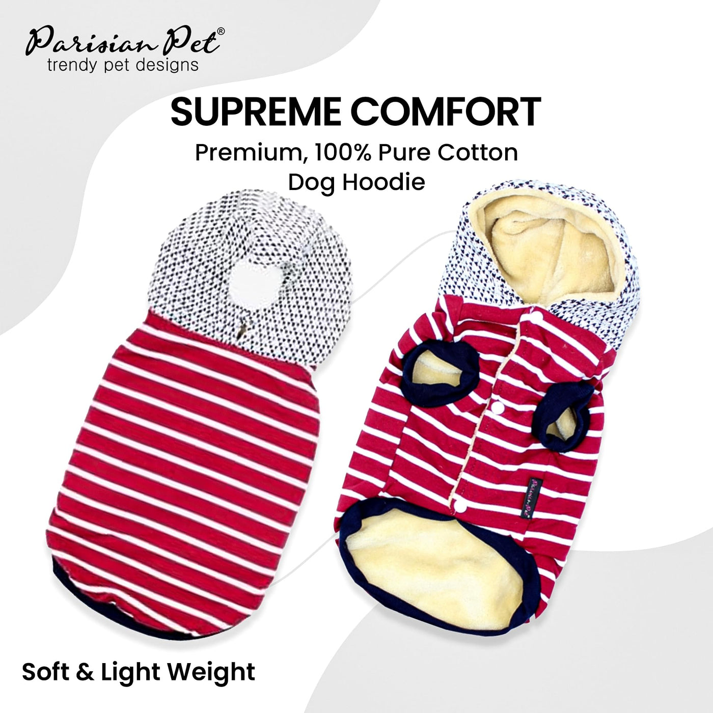 Parisian Pet Basic Dog Hoodie Is A Must-Have Piece In Any Dogs Wardrobe, Combining Practicality, Comfort, And Style. One Of The Key Features Of A Dog Hoodie With A Harness Hole Is The Hood Itself. Little Dog Sweatshirt Offering Additional Warmth Around The Dog'S Head And Neck During Colder Days. The Main Features Of Dog Hoodie Are: Convenient Leash Hole: Strategically Placed Near The Neck, Allowing Easy Leash Attachment Without Removing The Hoodie. Pocket Design And Functionality: The Sweaters For Big Dogs Also Have A Pocket On The Back, Adding A Touch Of Style And Providing A Place To Store Small Items Like Treats Or Waste Bags. Adjustable Hood: The Hood Of Dog Hoodies For Small Dogs Has A Drawstring To Keep It Secure Without Being Too Tight. Timeless Appeal Of Red: The Color Of The Large Dog Hoodie Works Equally Well For Male And Female Dogs, Making It A Safe And Versatile Choice If Youre Shopping For Multiple Pets. Perfect Fit For All Sizes And Breeds: Whether Your Dog Is A Playful Puppy, A Small Senior, Or A Large, Active Adult, This Dog Sweaters For Small Dogs Girl Is Designed To Accommodate Their Needs. With Its Wide Range Of Sizes And Adaptable Fit, This Dog Jerseys For Small Dogs Is Truly A One-Size-Fits-All Solution For Dog Owners Who Want The Best For Their Pets. By Purchasing Our Parisian Pet Dog Hoodie, Youre Not Only Investing In A High-Quality Garment For Your Pet But Also In Their Comfort And Style. Dont Miss Out On This Opportunity To Enhance Your Dogs Wardrobe With A Hoodie Theyll Love To Wear.