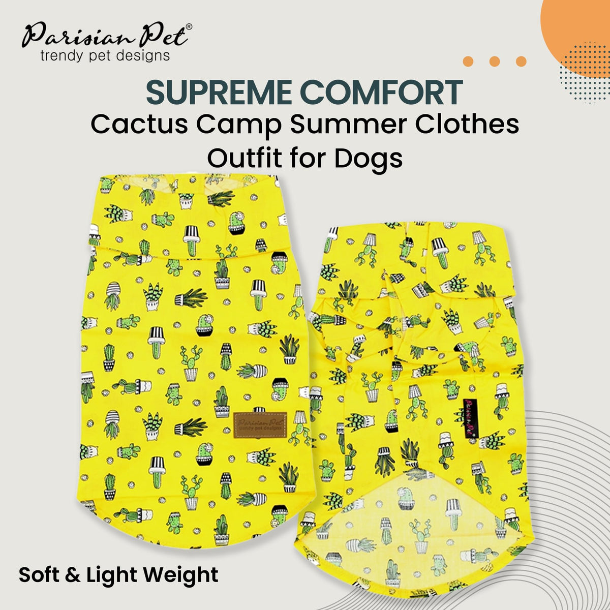 Parisian Pet Cactus Cap Beach Outfit - 100% Cotton Summer Clothes - Stylish Dog Costume - Breathable, Cool & Machine Washable -
