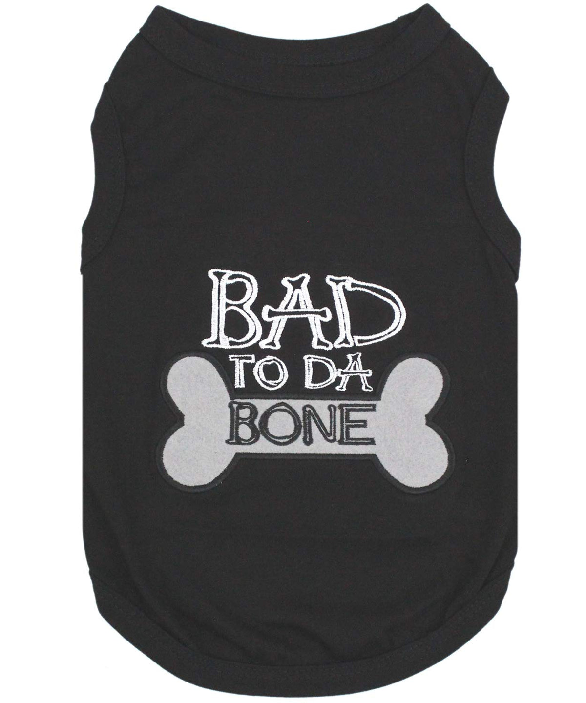 Parisian Pet Dog Cat Clothes Tee Shirts Embroidered T-Shirt Bad To Da Bone, M