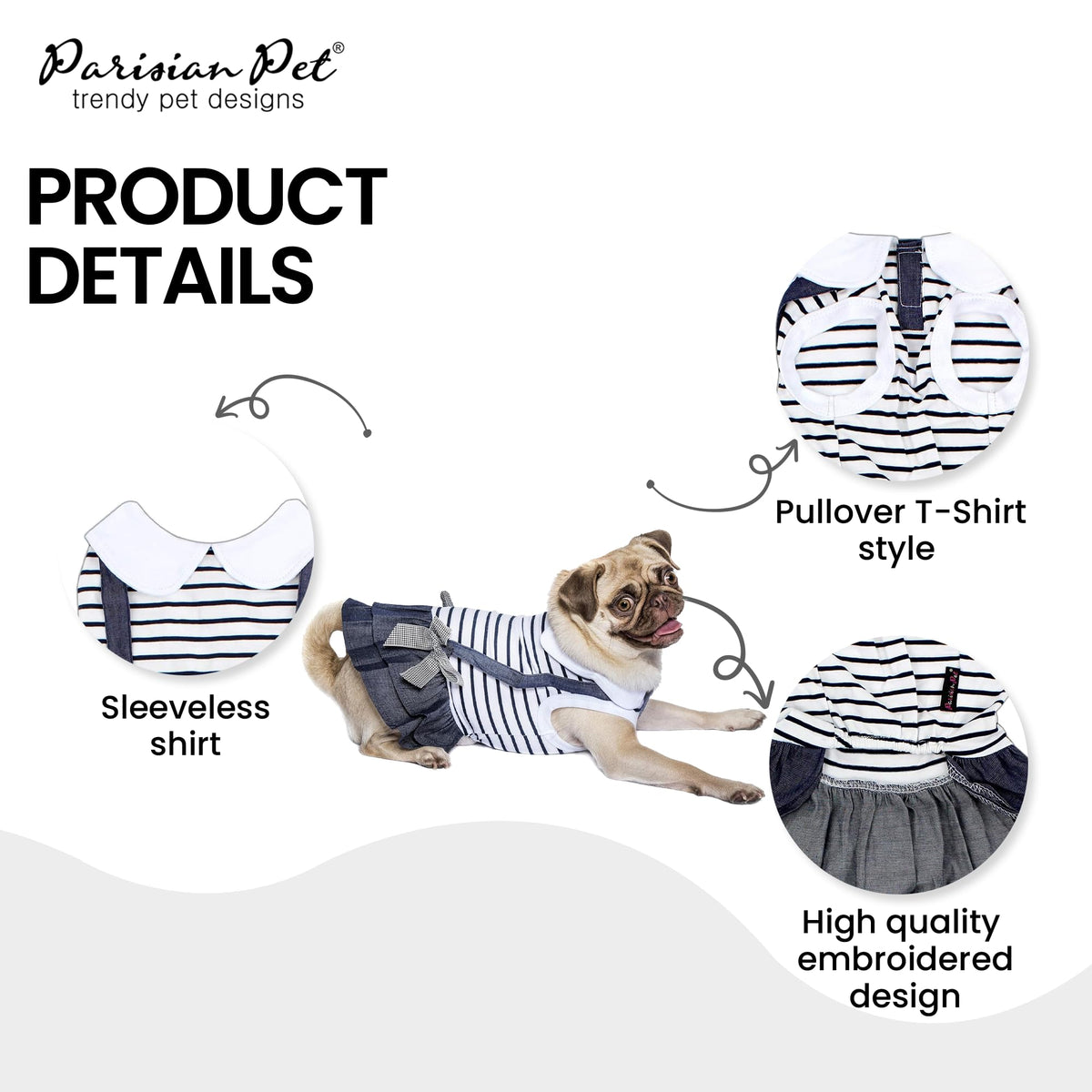 Parisian Pet Dog Dress - Preppy Girl Clothes, Stylish Chambray Skirt Summer Outfit - Lightweight Overall, Sleeveless For Small G