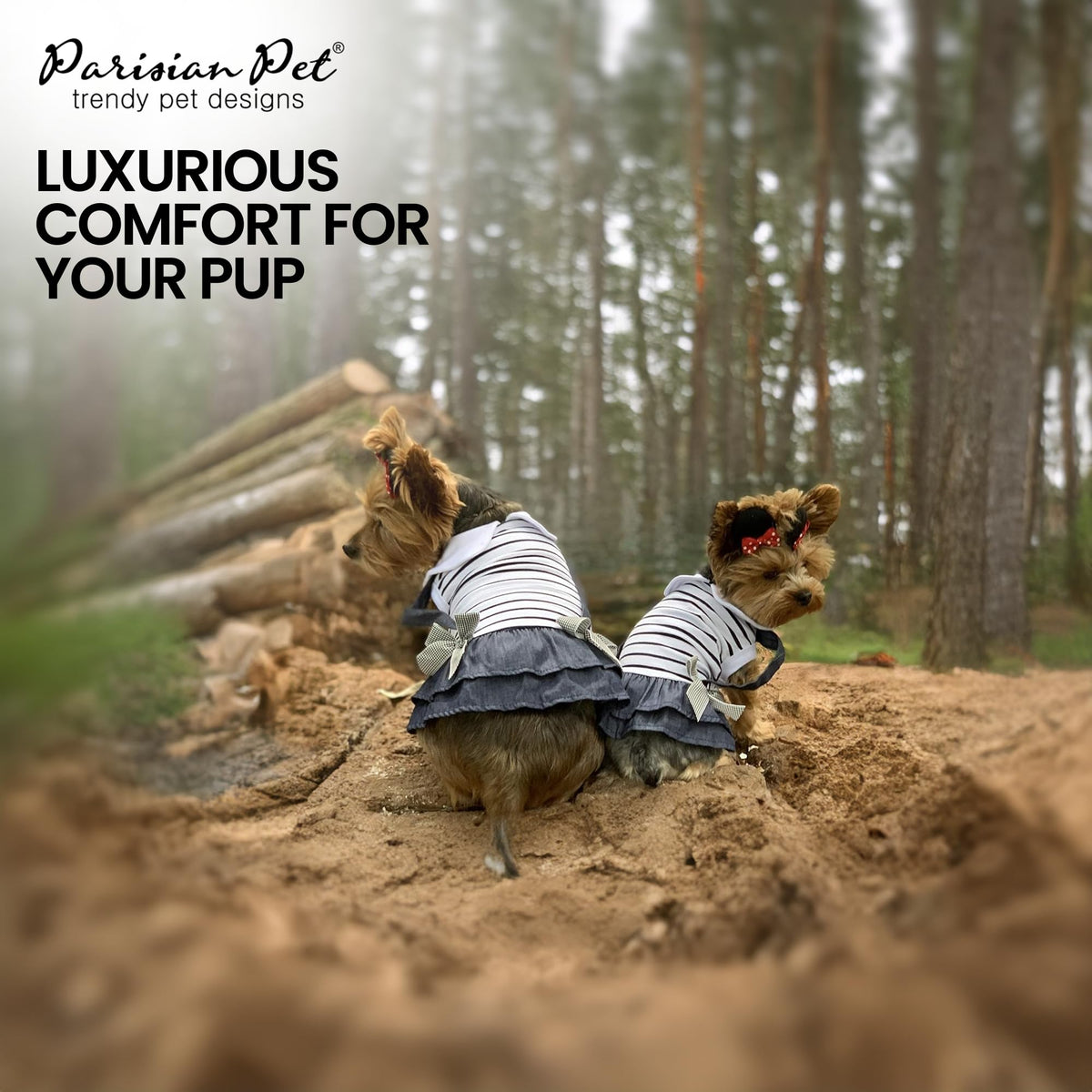 Introducing Parisian Pet'S Exquisite Collection Of Summer Dog Dresses! Dog Summer Outfits Are Designed To Suit Every Occasion From Attending Parties To Frolicking On The Beach Or Enjoying Holiday Getaways. Crafted With Both Style And Functionality In Mind, Each Dog Clothes Girl Dress Is A Perfect Blend Of Comfort And Chic Elegance. Whether Your Furry Friend Is Accompanying You To A Social Gathering Or Basking In The Sun On Sandy Shores, Our Dresses Ensure They Make A Fashion Statement Wherever They Go. From Vibrant Patterns To Sophisticated Designs, Our Collection Offers A Diverse Range Of Options To Suit Every Taste And Preference. Constructed From Lightweight And Breathable Fabrics, Our Summer Dog Clothes Girl Keeps Your Pet Cool And Comfortable Even On The Hottest Summer Days. The High-Quality Materials Ensure Durability And Ease Of Maintenance, Allowing For Worry-Free Enjoyment Of All Your Summer Adventures. So Whether It'S A Casual Beach Outing, A Festive Gathering, Or A Relaxing Holiday Retreat, Our Summer Dog Dress Collection Has You Covered.