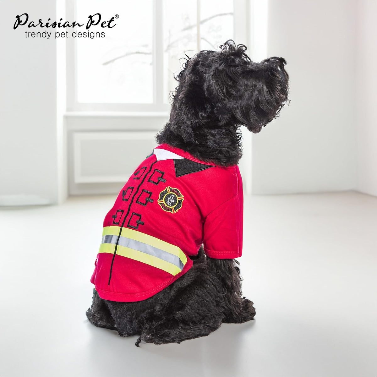 Parisian Pet Dog Shirt - Embroidered Dog Firefighter Costume - 100% Cotton And Polyester Dog Clothes - Sleeved Pet Costumes - Red Dog Costumes For Large Dogs - Lightweight Pet Shirts - Xl