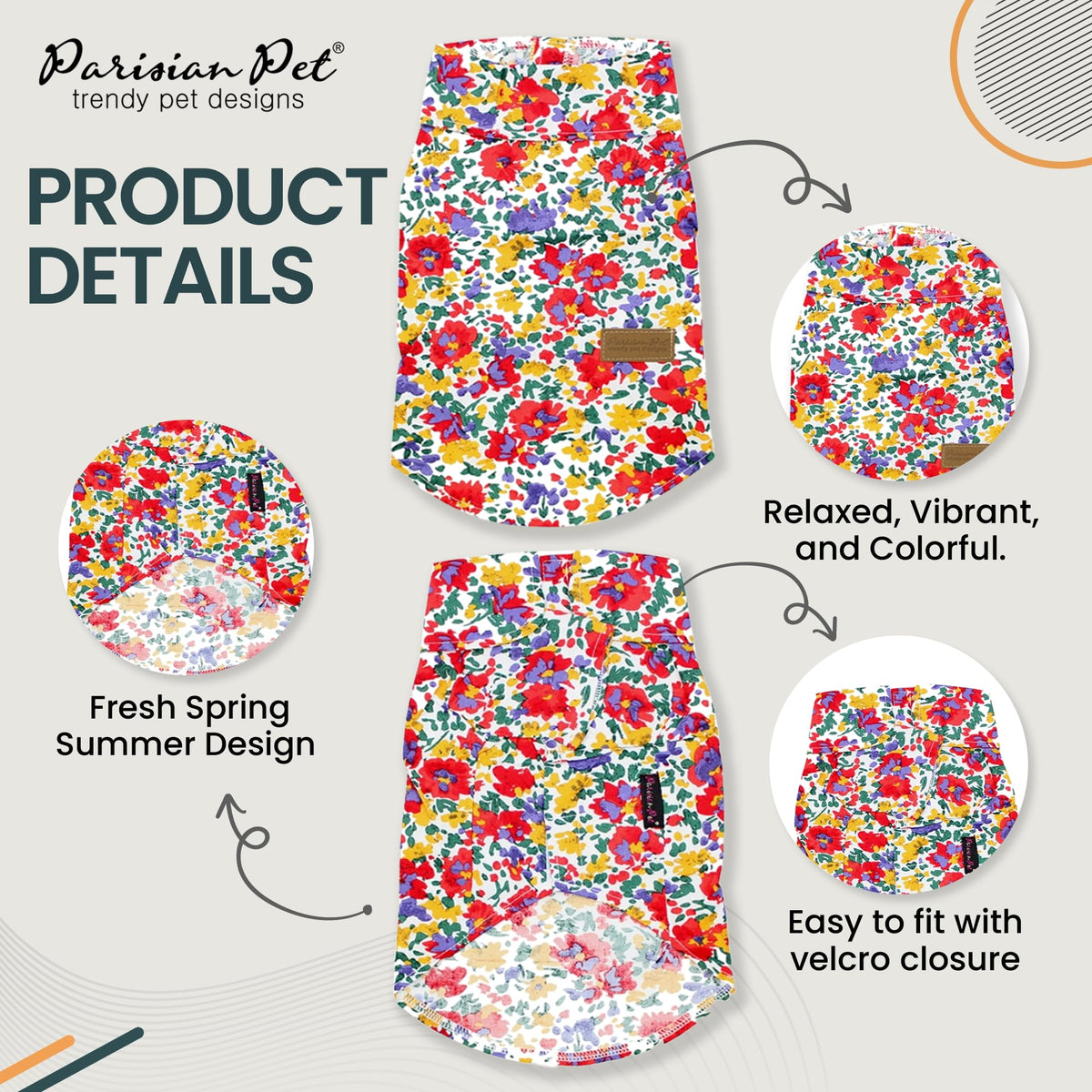 Parisian Pet Dog Shirt - Floral Pattern 100% Cotton Dog Summer Clothes - Stylish Dog Beach Oufit - Hook And Loop Closure Dog Cos