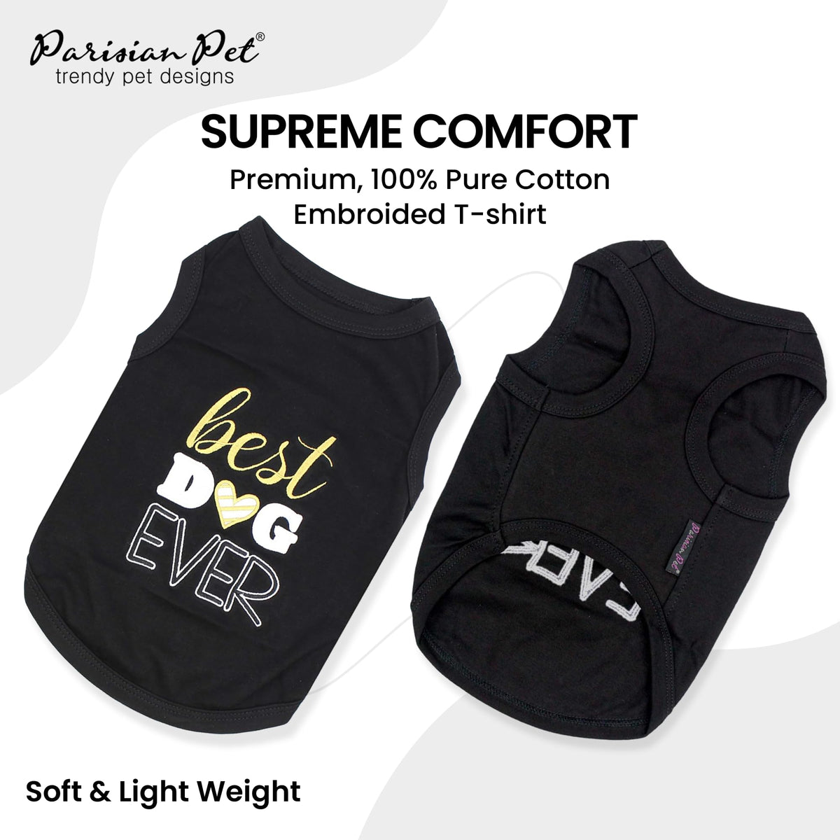 Parisian Pet Dog Summer Clothes | 'Best Dog Ever' Funny Dog Tshirt With Embroidery Pattern, Size 2Xl