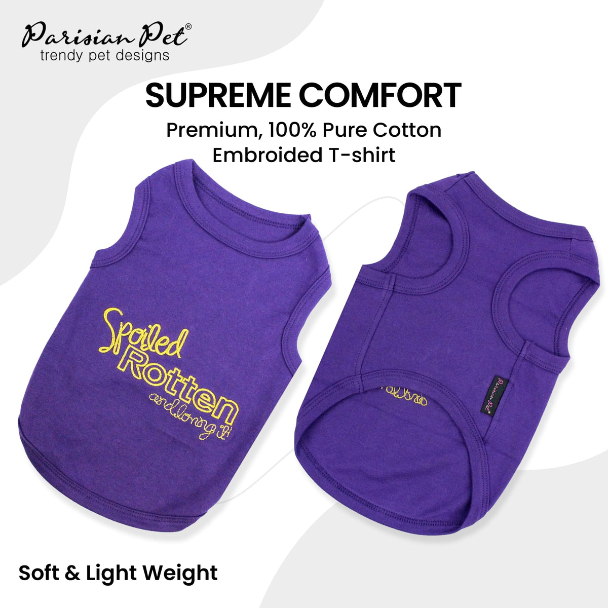 Parisian Pet Dog T-Shirt - Embroidered Spoiled Rotten Dog Clothes - 100% Cotton, Sleeveless Pet Vest - Machine Washable Shirts F