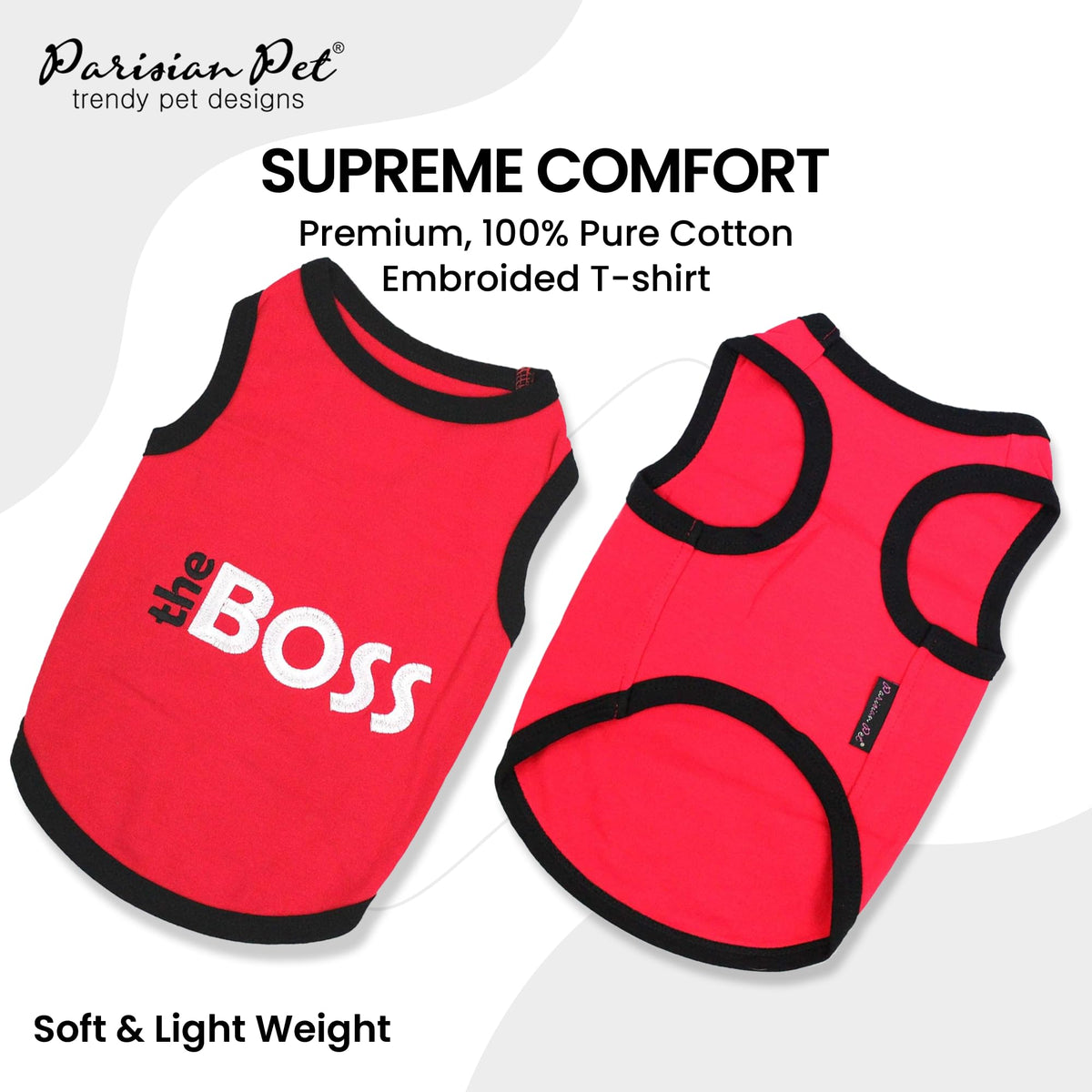 Parisian Pet Dog T-Shirt With Embroidered 'The Boss' Word - Lightweight Dog Clothes - Sleeveless Dog Outfit Boss - Dog Shirt For Large Dogs, L