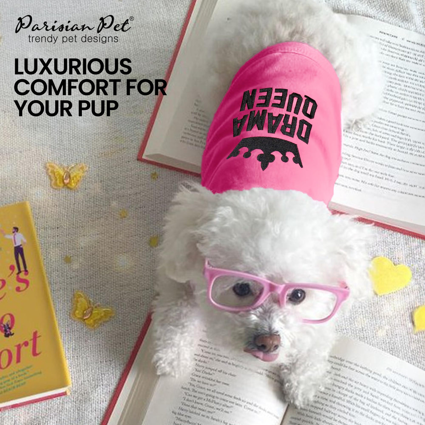 Parisian Pet Dog Tshirt - Embroidered “ Drama Queen “ Dog Shirt - Breathable And Lightweight Dog Clothes - Sleeveless Pink Dog Tee Shirts - Machine Washable Dog Shirts For Medium Dogs Girl - M