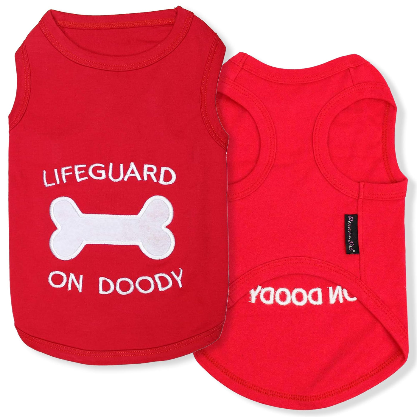 Parisian Pet Dog Tshirt - Embroidered Lifeguard On Doody Boy Dog Shirt - Pure Cotton And Lightweight Dog Clothes - Red Dog Tee