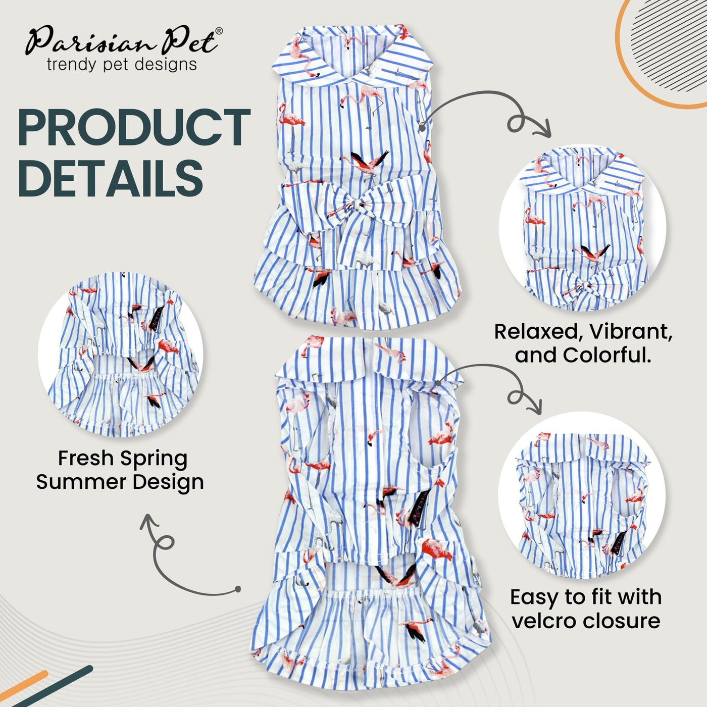 Parisian Pet Flamingo Summer Dress - Girly Dog Dress - 100% Cotton, Lightweight, Sleeveless - Medium Dogs