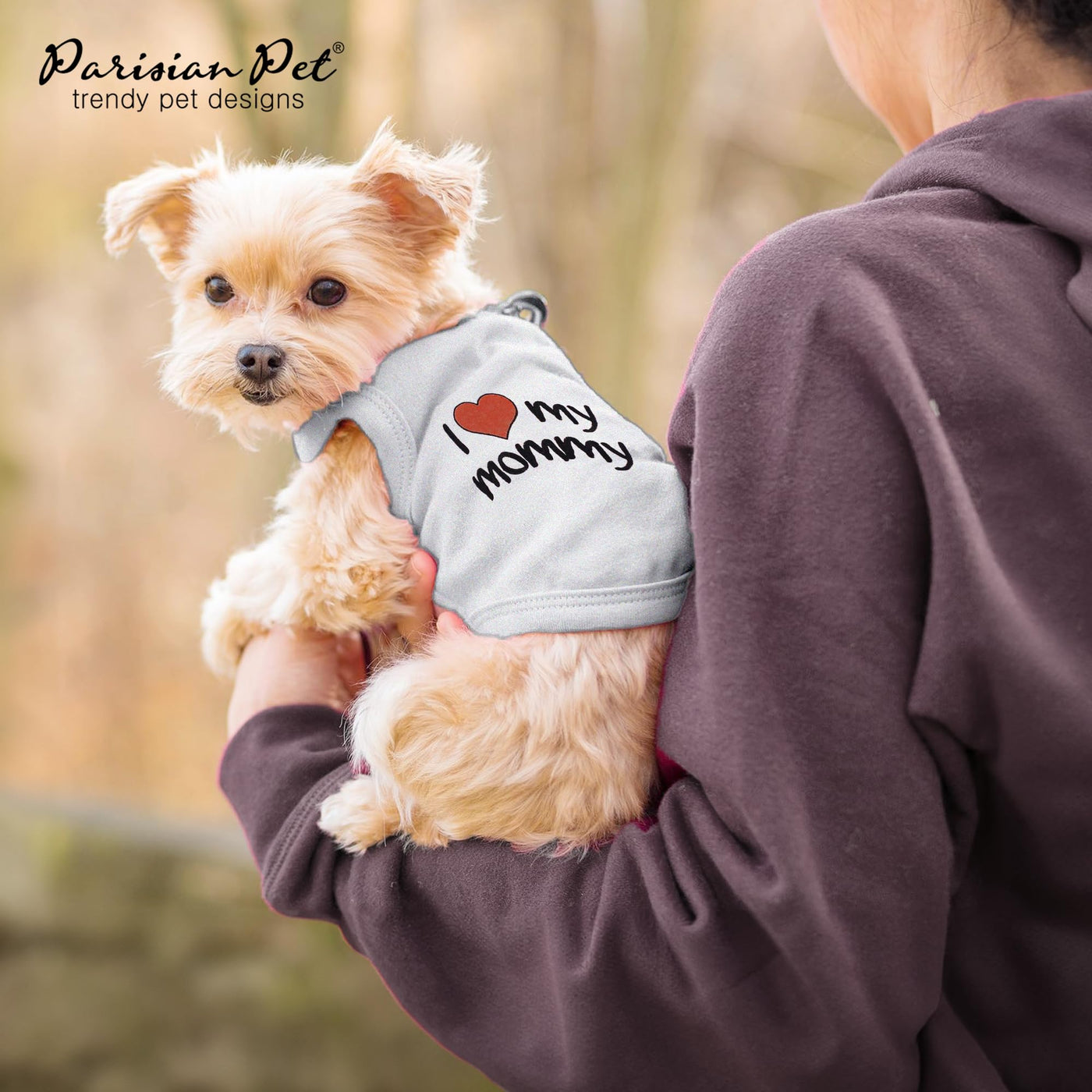 Parisian Pet Unisex Dog T-Shirt With Embroidered 'I Love My Mommy' Words - 100% Cotton, I Love My Mom Shirt - Sleeveless Pet Vest - Grey Dog Shirts For Large Dogs, Xl