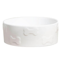 The Park Life Designs White ''Manor'' Pattern Pet Bowl Is A Decorative, Designer Dish Of Solid Blue, Hand Crafted With An Embossed Bone Design. Each Premium-Quality Pet Bowl Is Crafted From Heavyweight, Ceramic That Stands Strong Against Slippage And Spills. Its Durable, Chew-Proof Stoneware Is 100% Dishwasher- And Microwave-Safe. A Unique, Brilliantly-Colored Exterior Makes Meals Fun!