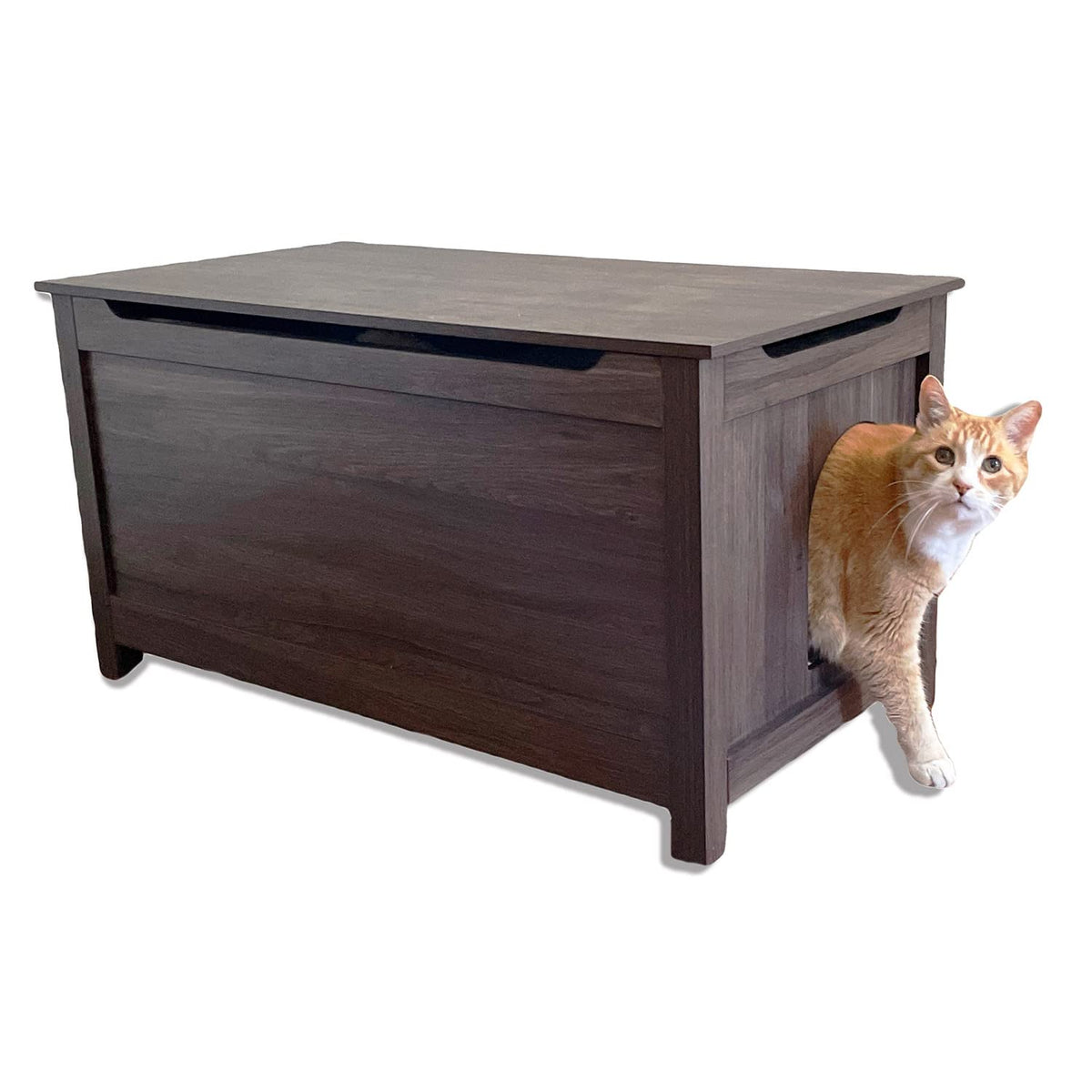 A cat's litter box can be the least elegant part of owning a cat, but we're here to change that. With clean and simple lines, Parker is an elegant piece in any home. Best of all, this beautiful piece of furniture hides the litter box. Made from high quality engineered wood, the entrance and interior panels can be used on either side, making it a versatile option for you to place where your home and cat need it the most. Its enclosed design prevents litter tracking, keeping your floor neat and tidy, and preventing odors from escaping. The Parker Catbox is designed to hold a jumbo or giant -sized litter pan that is 22' length by 17' width. Note: a larger litter pan will fit in the Parker if you do not install the interior panel. The size of the Parker Catbox: 36' length by 18.7' width by 18.7' height.. The cat entrance holes are 7.5” wide by 9.1” high to fit large cats. The Designer Catbox is easily assembled and comes with detailed instructions. For setup, you will need a Phillip’s head screwdriver.