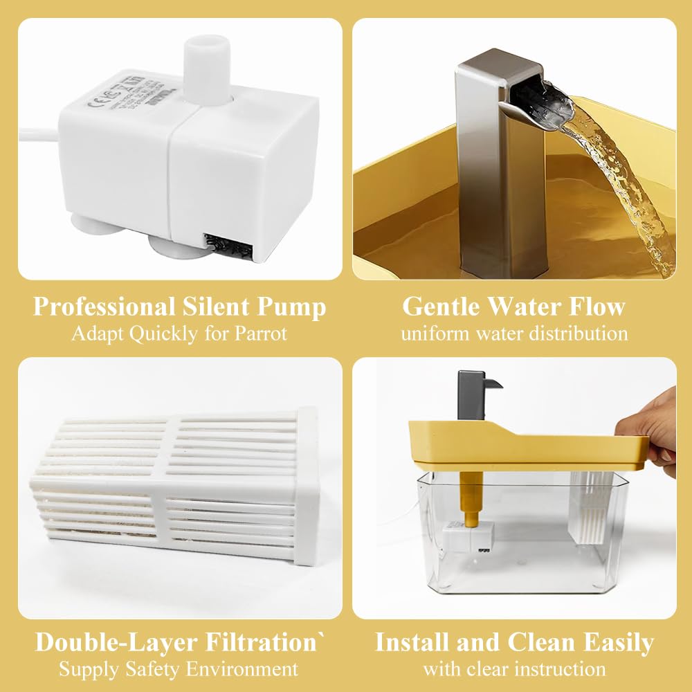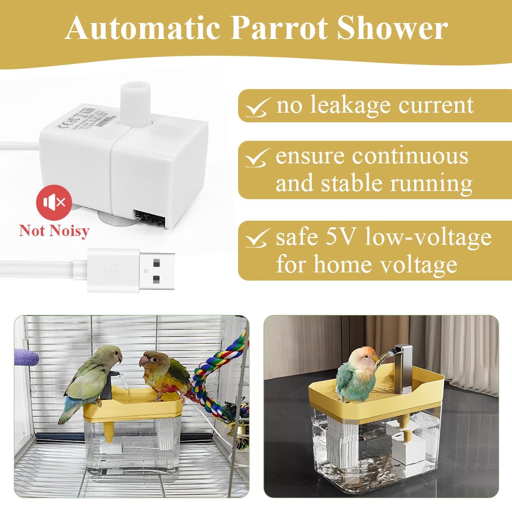 Parrot Bathtub Bird Automatic Bath Shower with Water Pressure Controller and Double Tube Contains USB and Power Plug for Small B