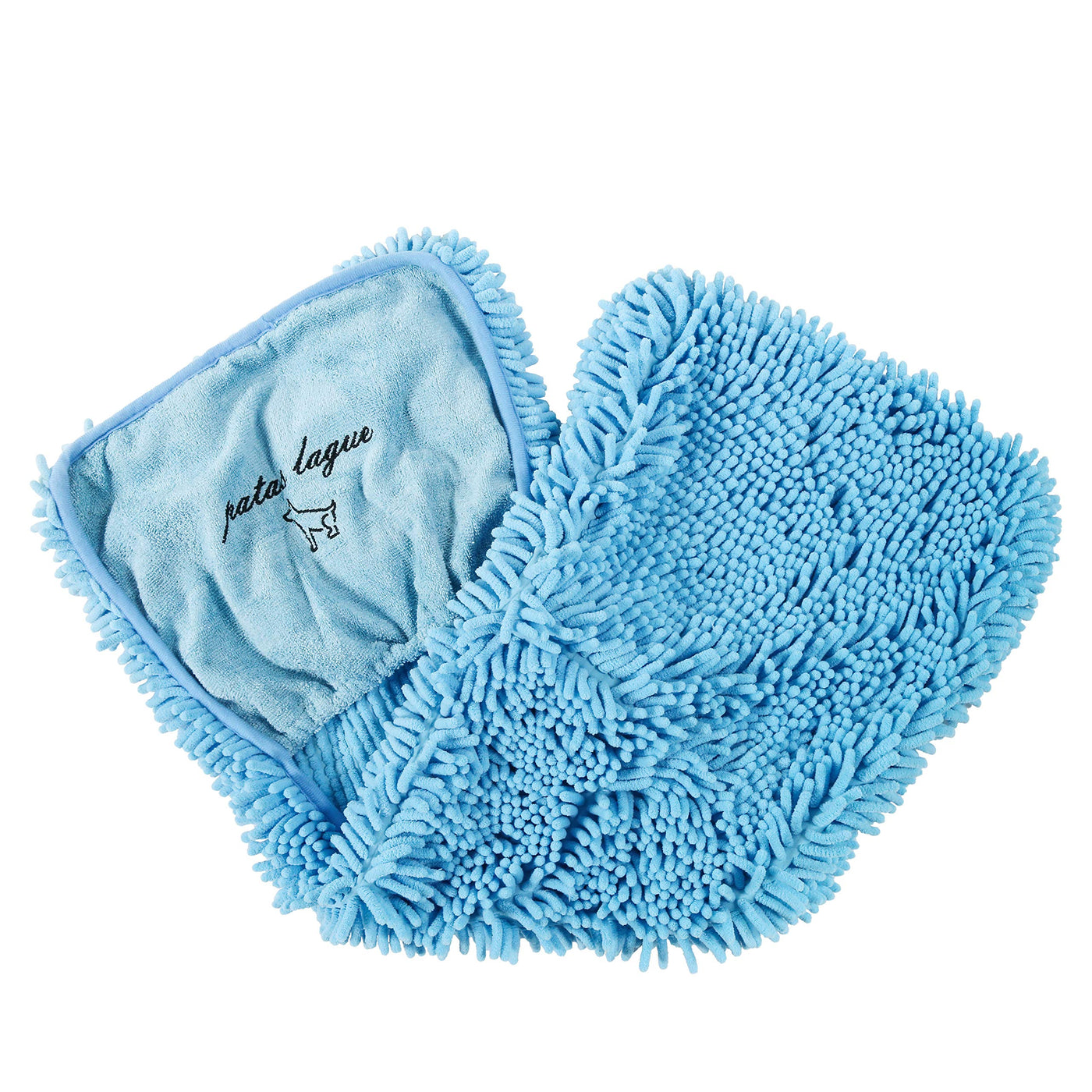 Patas Lague Absorbent Dog Towel Extra Large (35x15) Quick Drying Dog Bath Towel with Hand Pockets Microfiber Shammy Pet Towel for Dog and cat Machine Washable (Blue)