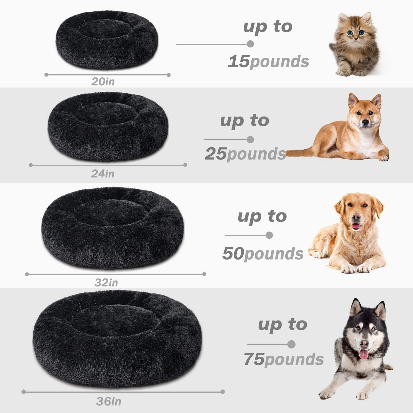 Patas Lague Calming Dog Bed For Medium Dogs, Fluffy Soft Cozy Cat Bed, Faux Fur Anti-Anxiety Plush Washable Pet Donut Cuddler For All Seasons 32In, Black