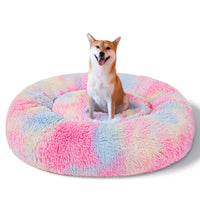Patas Lague calming Donut Dog Bed for Small Medium and Large dogs Anti-Anxiety Plush Soft and cozy cat Bed 30 inches Warming Pet Bed for Winter and Fall(Pink Rainbow)