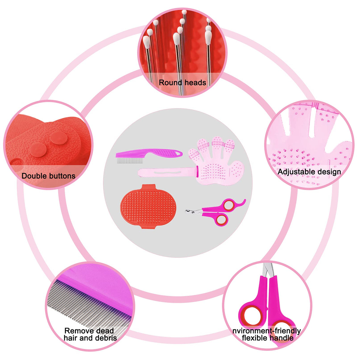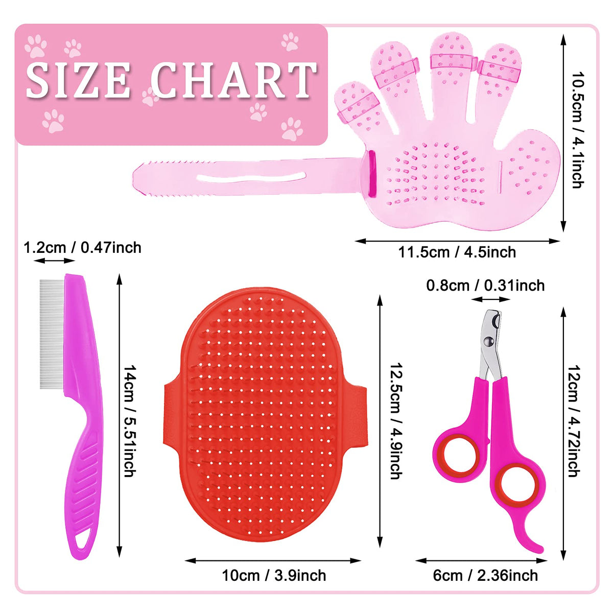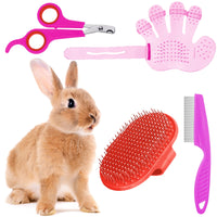 Patelai Bunny Grooming Kit With 4 Pieces Pet Hair Remover, Pet Nail Clipper, Pet Comb, Pet Shampoo Bath Brush, Suitable For Rabbit, Hamster, Dogs, Kittens, Puppies, Birds (Pink, Red)