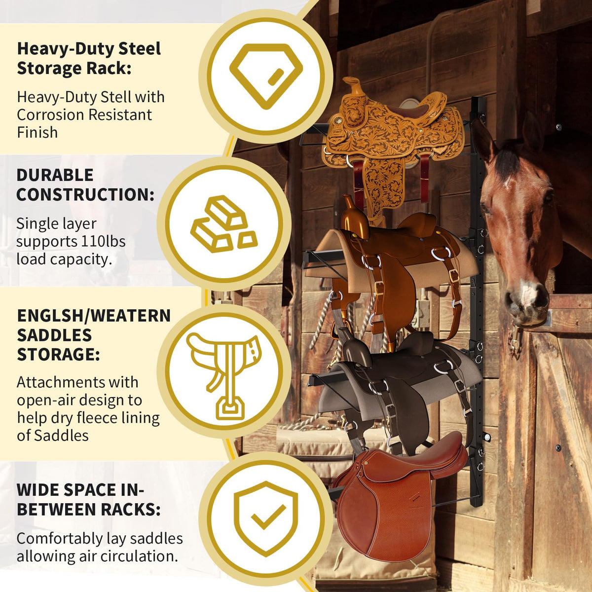Paterr 4 Tier Saddle Rack Wall Mount Horse Saddle Storage Rack Heavy Duty Western And English Saddle Stand Equestrian Saddle Hol