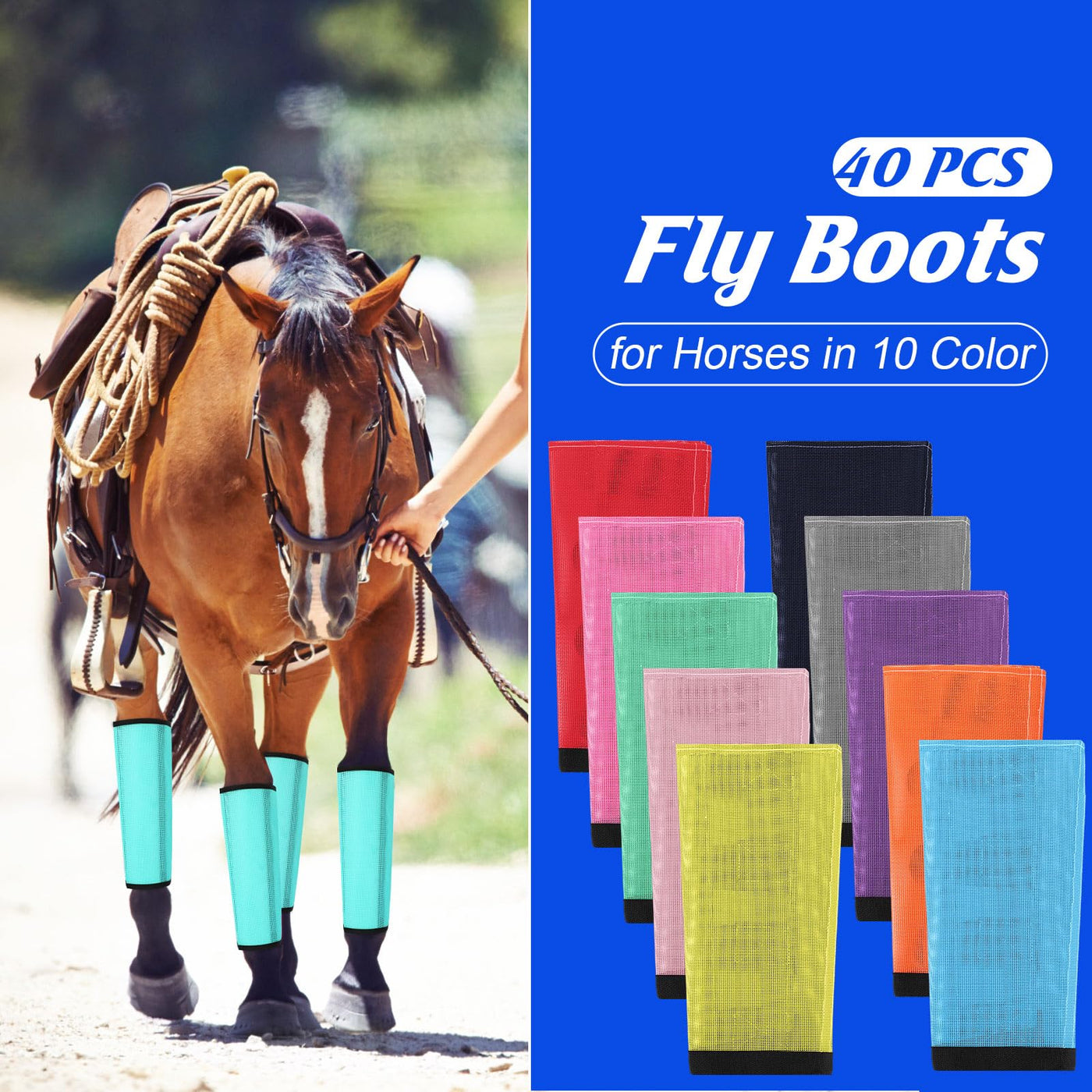 Paterr 40 Pieces Mesh Fly Boots for Horses Breathable Horse Leggings Protective Leg Boots Prevent Flies and Mosquitoes Bites Red
