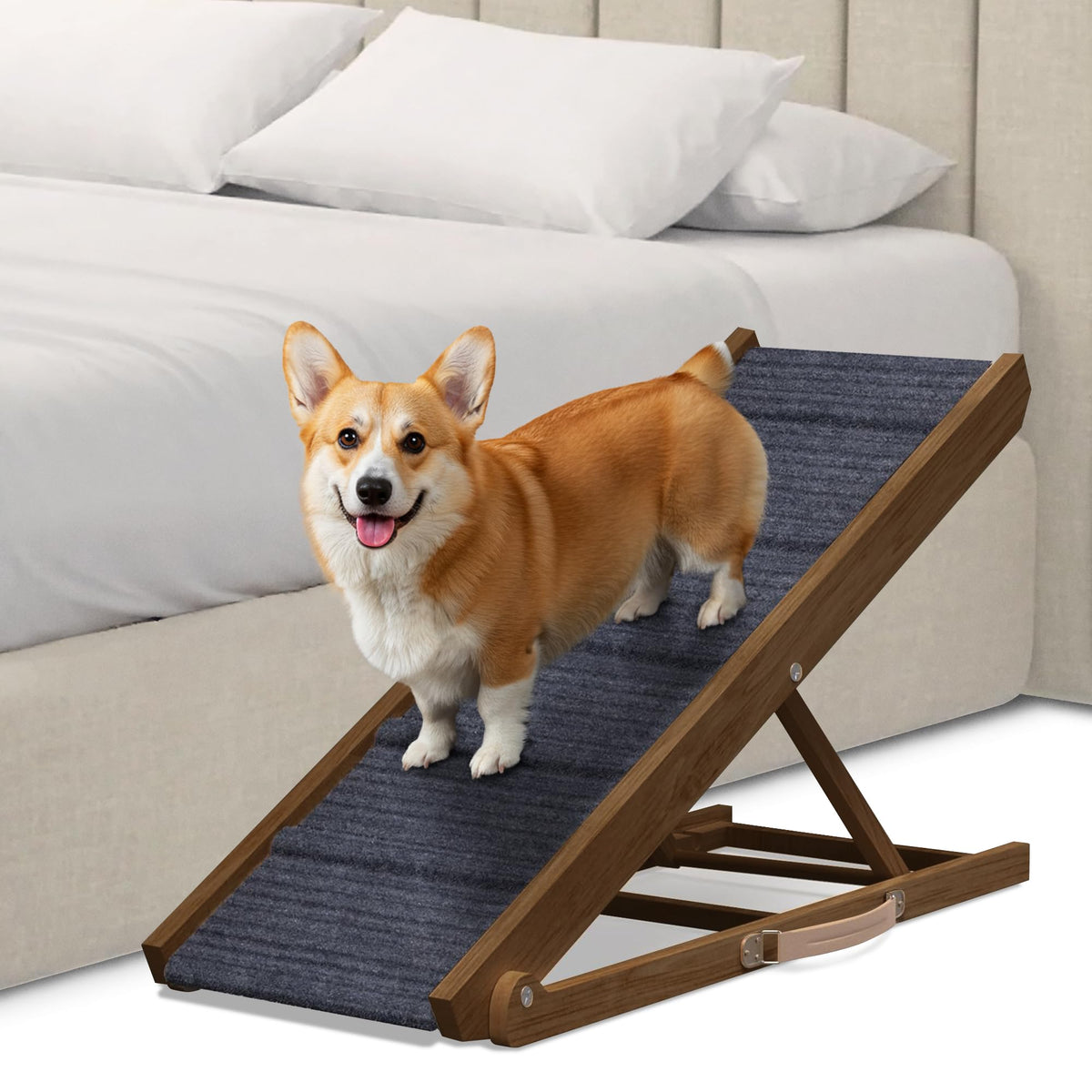 Pathosio Pets Dog Ramp For Bed Small Dog To Large Dog - Portable Ramp For Dogs, Folding Dog Ramp For All Breeds - Adjustable Dog Ramp For Couch Or Car, Wooden Dog Ramps For Sof
