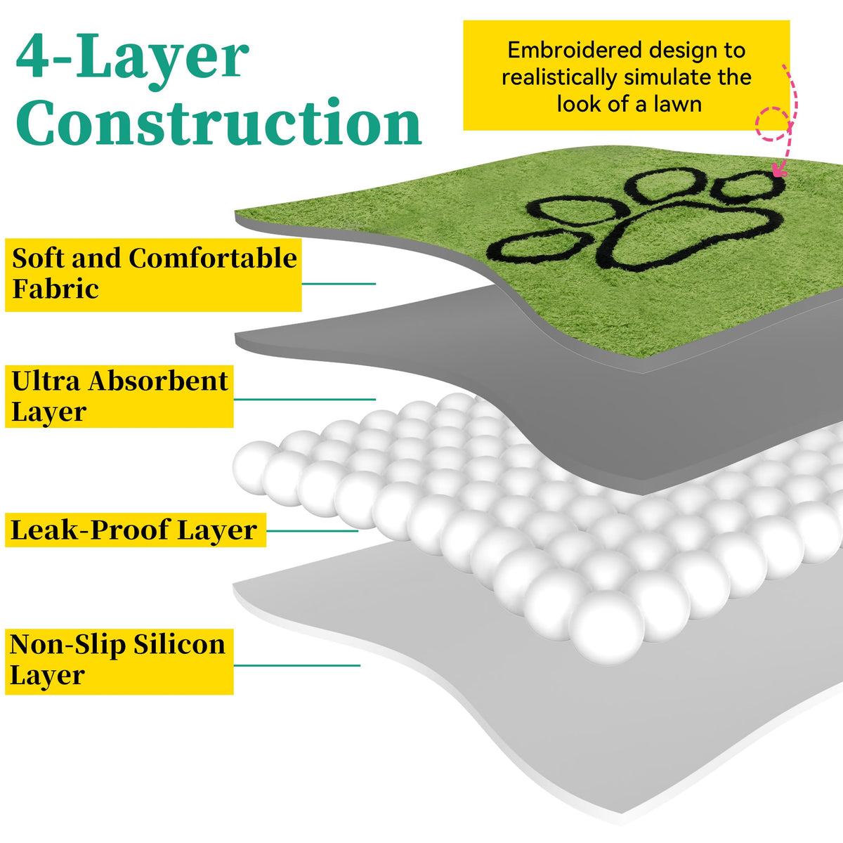 Patiencet Washable Pee Pads For Dogs Features A Lifelike Grass Design With Dog Paw Patterns, Offering A Fresh And Realistic Look,And Multiple Sizes To Accommodate Various Pet Types. The Reusable Pee Pads Use High Quality Materials To Ensuring A Dry And Cozy Environment For Your Pet. The Bottom Of This Washable Pee Pads Is Equipped With A Durable, Anti-Slip Drip-Plastic Backing, Preventing Shifting And Sliding, Ensuring The Safety And Stability. This Pee Pads For Dogs Washable Is Suitable For Various Indoor And Outdoor Settings. When Cleaning, Simply Put The Pad Into The Washing Machine And Dry It Before Use.