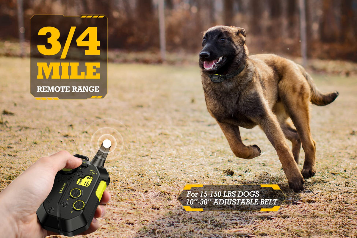 3/4 mile range IPX7 waterproof. Training indoors and outdoors easily and freely even for hunting with close-working dogs without worrying about malfunction in water.