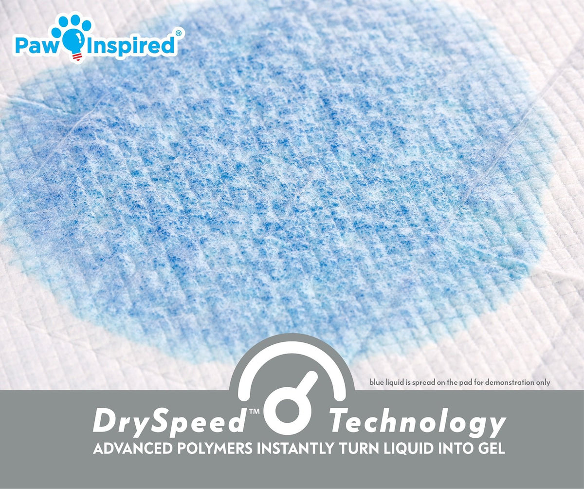 Paw Inspired ultra protection extra large dog pads are 90% larger than the standard 21 x 21 inch pad. With a liquid absorbency of over 6 cups they are one of the most absorbent pads in the market. Paw Inspired ultra protection extra large dog Pads are a great choice for larger dogs or dogs who tend to go in larger quantities.