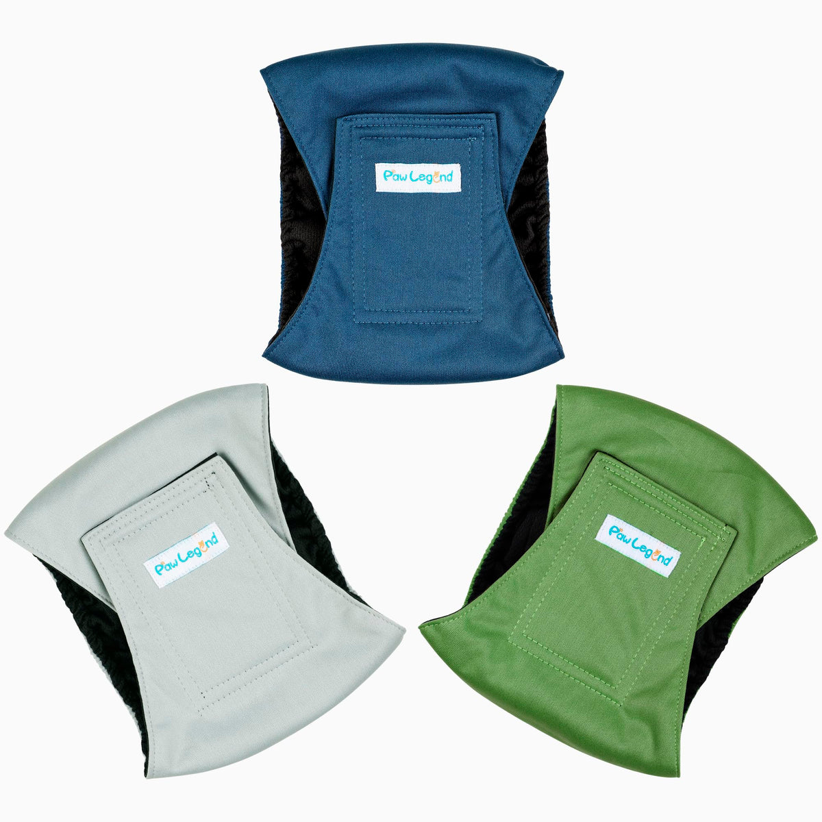 Paw Legend Washable Dog Belly Band Wrap Diapers For Male Dog | High Absorbing Puppy & Doggy Diapers Male (3 Pack,Army,Grey,Navy,Xx-Large)